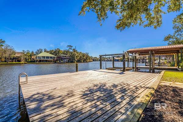 Discover Peaceful Riverfront Living in Fairhope, AL. Welcome to your slice of serenity on Fish River. This beautifully remodeled 3-bedroom, 3-bathroom waterfront retreat comes fully furnished and ready to impress. Nestled just 15 minutes from downtown Fairhope and a short 35-minute drive to Orange Beach, this home offers both convenience and a tranquil escape. Step outside onto your oversized porch and soak in those unparalleled river views. Your own dock and 8,000 lb boat lift sit in a no-wake zone, ensuring calm, gentle waters for relaxation or water adventures. Inside, you'll find vaulted ceilings, a fresh open floor plan, brand-new bathrooms, plus a recently updated kitchen with new countertops, stylish backsplash and sink. With the potential to gross over $50K annually in short-term rental income, this property could easily be a getaway or investment. Enjoy the convenience of a cargo lift, ample covered parking, and a large, finished attic storage closet with HVAC. Don't miss out on this gem, your riverside haven awaits! Buyer to verify all information during due diligence.