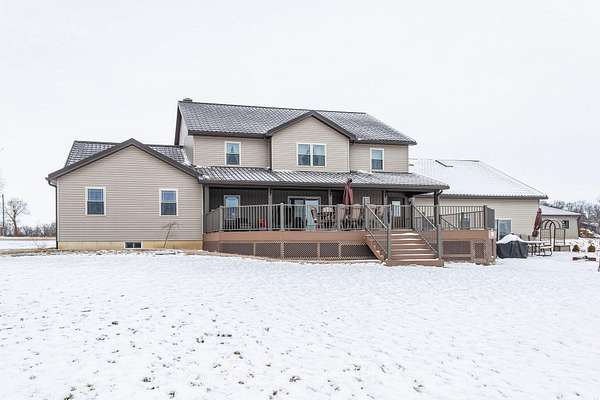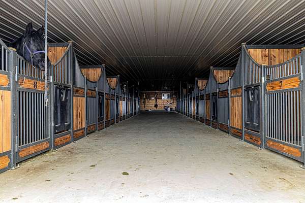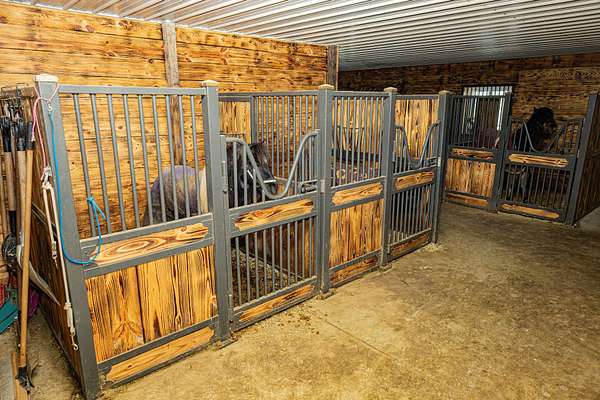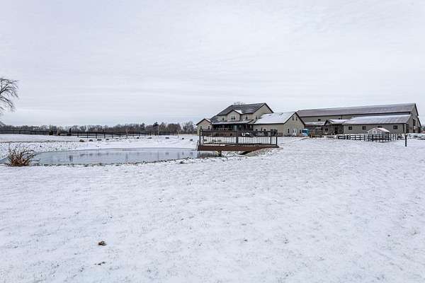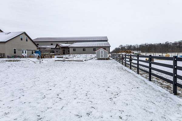 This beautiful 5-acre property sits just across the Ohio state line and features a spacious 5,000+ sq. ft. home along with an impressive horse-ready barn complex. The main barn offers a 60' x 120' center area with two large lean-tos - one measuring 80' x 36' and the other 48' x 36'. This property presents an outstanding income-producing opportunity. It currently includes 29 horse stalls (19 large and 10 smaller), with space to add approximately 10 additional stalls. The barn also features a therapy pool, along with pex piping designed for pool heating. Inside the home, you'll find two expansive living areas on the main floor filled with natural light and accented by beautiful hardwood floors. The property includes a generous 40' x 60' dry basement ideal for storage. Upstairs are four rooms with abundant space to expand or reconfigure as desired. House is currently heated by 2 wood stoves. There is another expansive room leading to the back patio and a large covered porch, a beautiful back deck and a back patio as well to enjoy the sunny summer days. Please note: the current owner does not use electricity, so electrical service will need to be installed. The home currently uses a cistern for water for dishes and showering, and the barns use gas-powered generators to draw water from the cistern. The property includes a large, fenced pasture area for horses to roam and well maintained pond, plus an additional smaller barn for storage or flexible use. This property offers exceptional potential for equine enthusiasts, boarding operations, or those seeking a unique rural homestead. Schedule your showing today.
