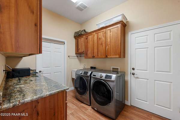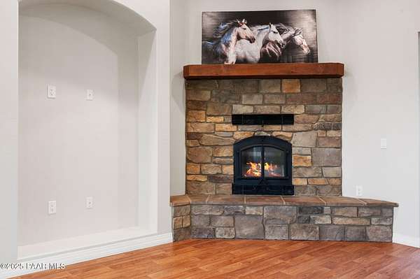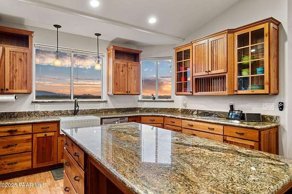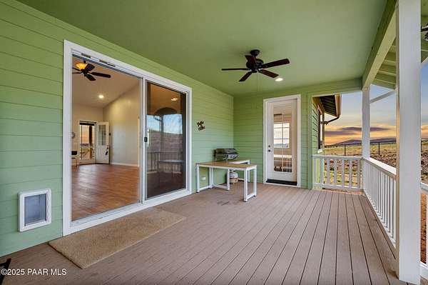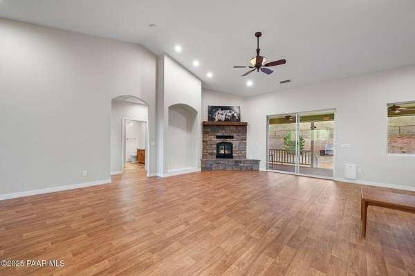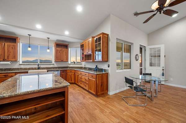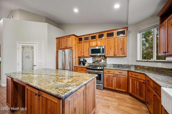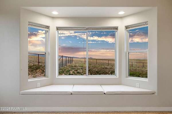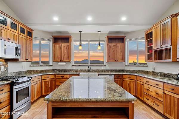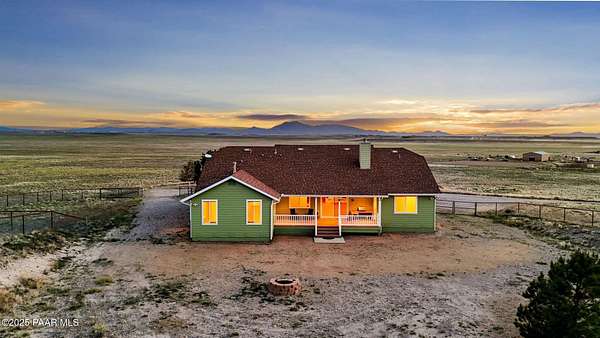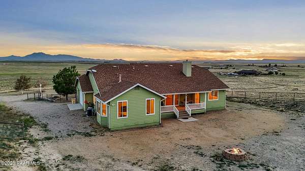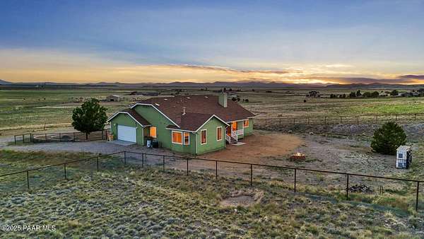 Outstanding Country Estate on 10+ Acres in Haystack Ranches. Bordering thousands of acres of private ranch land to the south, this exceptional 10+ acre property offers unmatched privacy, panoramic big-sky views, and the peace and tranquility Northern Arizona is known for. Located in desirable Haystack Ranches in Chino Valley, enjoy frequent wildlife sightings and room to create your ideal country lifestyle with ample space to add equestrian facilities, an RV garage, or a guest home. The attractive residence features an open-concept floor plan highlighted by vaulted ceilings and a striking stacked-stone fireplace in the living room. The beautifully appointed kitchen showcases rich wood cabinetry, granite countertops, and stainless steel appliances - perfect for everyday living and entertaining. The comfortable primary suite offers its own gas fireplace, bay window, spacious walk-in closet, and walk-in shower. Guest bedrooms share a full bathroom, while a generously sized laundry room provides additional storage and convenience.An oversized, insulated two-car garage with an 8-foot door accommodates larger vehicles and equipment. The backyard is enclosed with pipe-rail fencing, ideal for pets or added privacy. The property also boasts excellent well production. A rare opportunity to own a country property with space, views, and limitless potential.
