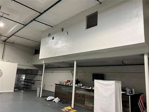 - Upstairs area has old projector room that overlooks the open floorplan downstairs with a connecting office that has a Full Bathroom & Shower