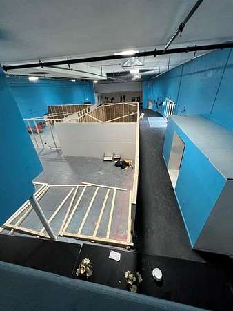 - Upstairs office area with a full bathroom and shower -- ideal for ownership, coaching staff, or management o Original movie projector screening area on the second level -- perfect for film review, team meetings, presentations, or training education o Performance stage that can be repurposed for demonstrations, camps, events, or content creation