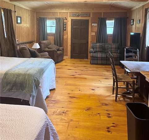 Tucked away in the center of the property, offering complete seclusion, is a charming and rustic cabin. This cozy retreat is the perfect basecamp for family and friends, providing a comfortable place to gather, share stories, and relax after a long day of hunting. The cabin area is a true oasis, with a covered concrete area next door for grilling, storing firewood, and simply enjoying the peaceful surroundings. The cabin is run exclusively by a diesel generator which will remain on site.