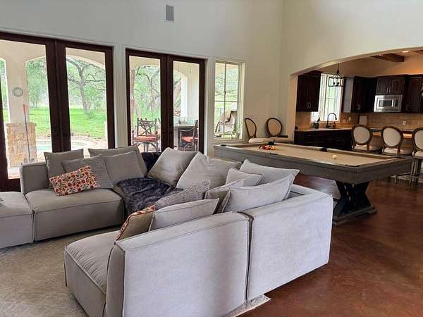Experience the pinnacle of lakeside elegance in the exclusive, gated enclave of Las Entradas on Lake Travis in Spicewood right outside of Austin. This stunning 3,368sf estate is perfectly positioned among magnificent neighboring estates, offering a rare blend of privacy and sophistication. The thoughtful floor plan features 5 bedrooms and 4.5 bathrooms, which includes the primary suite conveniently located on the main floor. Designed for the ultimate Texas lifestyle, the backyard serves as a private oasis featuring a sparkling pool, perfect for cooling off on warm hill country afternoons. Water enthusiasts will appreciate the unparalleled access to a deep-water Lake Travis boat dock, complete with a dedicated boat slip included with the lease. The home is self-sufficient with its own well and septic system and is situated within the highly acclaimed Lake Travis ISD. Whether you are hosting guests in the expansive living areas or heading out for a sunset cruise, this property offers a resort-style retreat in one of the lake's most prestigious communities.