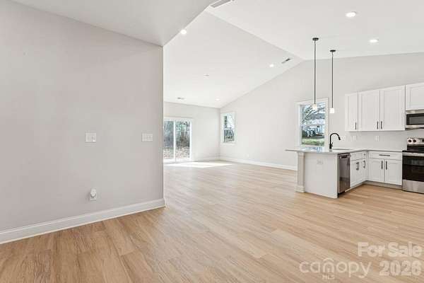 Experience the perfect blend of peaceful country living and modern convenience in this brand-new, thoughtfully designed ranch home set on 1.83 beautiful acres. Bathed in natural light, the open-concept layout showcases vaulted ceilings and stylish contemporary finishes that create a bright, airy feel throughout. The stunning kitchen is the heart of the home, featuring a spacious peninsula, elegant quartz countertops, stainless steel appliances, and generous prep space-ideal for both daily living and hosting gatherings. The flowing floor plan offers a spa-inspired primary bedroom ensuite and three additional well-sized bedrooms, each with ample closet storage to keep everything organized, and a guest bathroom. A dedicated laundry room adds everyday functionality, while the inviting living area opens seamlessly to the rear patio-perfect for enjoying peaceful mornings or relaxing evenings overlooking the wooded landscape. Tucked away in a serene rural setting yet just minutes from Highway 74 and I-85, shopping, dining, golf courses, a local winery, and a nearby casino, this property offers the rare opportunity to enjoy privacy without sacrificing accessibility.