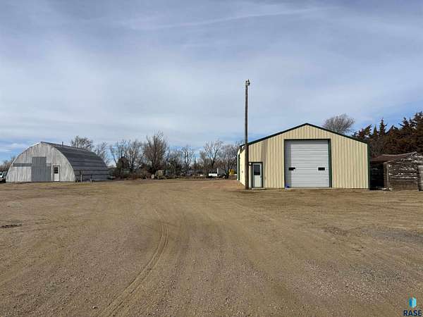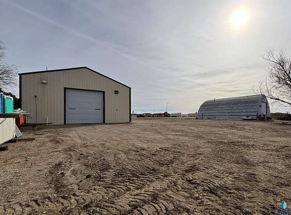 Opportunity knocks just outside of city limits at the intersection of SD Hwy 45 & SD Hwy 14--a prime location with excellent access & visibility! This versatile 2.58-acre commercial property is ready for your business--whether you're looking for a turnkey shop space, storage, or expansion opportunities, this property has the infrastructure to support a variety of commercial uses. The 32' x 80' insulated, finished, and heated pull-through shop is designed for efficiency & functionality. Originally built in 1963, the west half was added in 2004, along with an updated electrical system & the bathroom with a shower. The building features propane heat, while the bathroom has an electric wall heater. Three large overhead doors provide convenient access: 13' x 12' (east), 12' x 12' (west), and 18' x 12' (south), along with two walk-through doors. Lighting has been upgraded with newer LED & metal-halide fixtures, the metal roof was improved in the summer of 2024 with new ice skids & gutters, & the west half of the building has a large floor drain. The property also includes a 30' x 45' Quonset, currently used for cold storage. This structure features a 12' x 12' automatic overhead door on the west side & a new walk-through door on the east side. It has a half-bath, which was winterized 10 years ago & the water heater was shut off. With the addition of a new furnace, it may be possible to restore heat & full bathroom functionality. The property offers 3 RV hookups with water, electricity, and sewer drains connected to the septic system. (All sewer lines on the property drain to the septic tank.) Additionally, the main building presents extra 30-amp and 50-amp exterior electric hookups. Dirt piles and personal property will be removed before closing. With easy highway access; plenty of space for maneuvering vehicles, trailers, or equipment; storage; and room to grow--don't delay--make a showing appointment today!