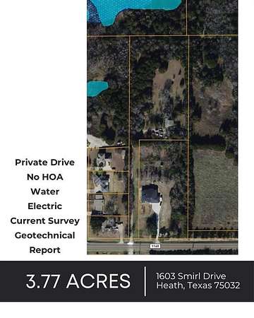 Experience an unheard of opportunity to build your dream luxury escape in the heart of prestigious Heath, Texas. Tucked down a secluded private drive where the noise falls away and the trees rise up around you, 3.77 acres of park-like serenity wait for someone bold enough to claim them. This is where you don't just build a home, you create a legacy, shaped exactly the way you envision it. Here, families who crave privacy finally get the space to breathe. The space to build a custom home worthy of its surroundings, with room to entertain under open skies and gather in a place that feels far removed from the world yet sits moments from top-tier schools, necessities, and the restaurants you love.