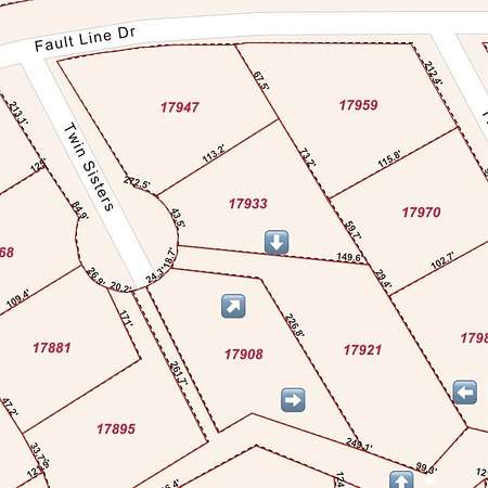 Take Ranch Road 2147 to Bay West Blvd. Turn onto Bay West Blvd, continue to Fault Line Dr. Turn right onto Fault Line Dr. Make your 3rd right onto Twin Sisters. Lot located at the bottom left of cup-de-sac. Lot shaped is irregular, & would have a long driveway leading to the back right of lot