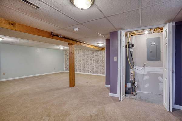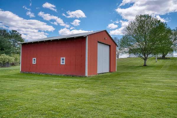 Situated on two parcels totaling 2.18 acres in Hanover Township within the Licking Valley School District, this property offers a blend of space, functionality, and convenience. Located directly across from Licking Valley Elementary School and near Licking Valley High School and Middle School, it includes a single-family home with 3-4 bedrooms, 2 full bathrooms, and a 1,200-square-foot metal barn. The one-story home features over 2,000 square feet of finished living space, including a fully finished lower level. The main floor offers a spacious living room with hardwood floors and a fireplace with a wood-burning insert and stone hearth, a dining area with built-in shelving, and an eat-in kitchen equipped with stainless steel GE appliances (refrigerator, stove, and microwave). You'll also find three bedrooms and a remodeled full bathroom on this level. The finished basement adds valuable living space, with a front area that includes a gas heater--ideal for a family room. The back portion of the basement is also finished (formerly used as a 4th bedroom) and includes a second full bathroom. There is a two-car attached garage, and space for extra parking or a turnaround on the concrete driveway. Outside, the property's two parcels over a patio, Gazebo, large metal barn, and ample room for outdoor activities. There is also a whole house generator.