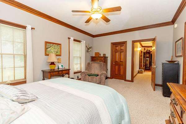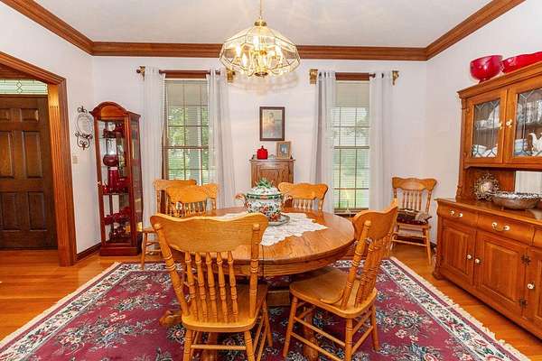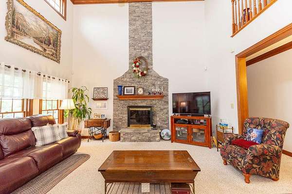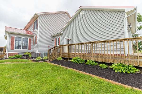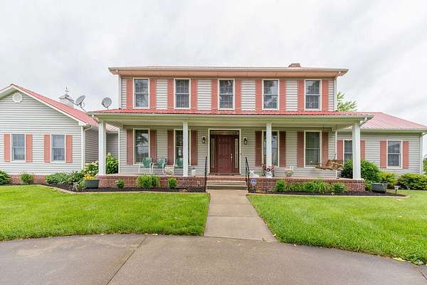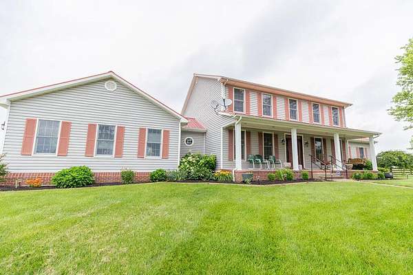 Hard-to-Find 37+/- Acre Farm with Custom-Built Home. Discover this rare opportunity to own 37+/- acres of beautiful rolling farmland, featuring a one-owner, custom-built 4-bedroom, 3.5-bath home with a full, partially finished walk-out basement. Perfect for horses, livestock, crops, or even hunting, this property offers both wide-open pastures and a tree-lined backdrop for privacy and recreation. Step inside and be welcomed by a spacious two-story great room with soaring ceilings and a breathtaking floor-to-ceiling stone fireplace, framed by large windows overlooking the scenic countryside. The first-floor primary suite includes a private bath and walk-in closet. A formal dining room and living room provide flexible spaces for entertaining, a home office, or even a playroom. The eat-in kitchen is a chef's delight with granite countertops, 42" wood cabinetry, a full suite of appliances, and plenty of space for family gatherings. Conveniently located off the kitchen are a half bath, laundry room, and access to the fully insulated 2-car garage. Upstairs, you'll find spacious bedrooms with walk-in closets and ceiling fans, plus a full bath with a dual-sink dressing area. The walk-out basement expands your living space with a large recreation area and two additional rooms that could serve as guest rooms, hobby spaces, or home offices. Unfinished areas offer endless potential-perfect for storage or even a future pool house. Enjoy peaceful country evenings from the large front porch or entertain on the rear deck surrounded by mature landscaping. The impressive concrete driveway stretches all the way to the road, adding both beauty and function. Lovingly maintained and thoughtfully designed, this home is ready for its next family to enjoy. Don't miss your chance to own this exceptional property in the heart of Gentry's rolling farmland!