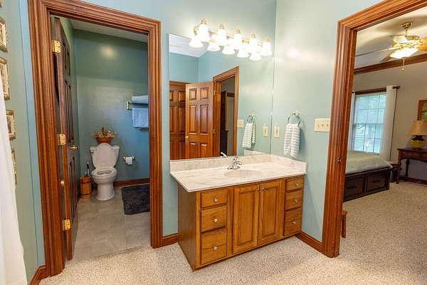 - Breakfast Bar, Ceiling Fan(s), Central Vacuum, Eat-In Kitchen, Primary Downstairs, Walk-In Closet(s)