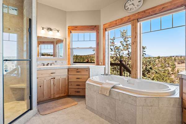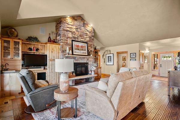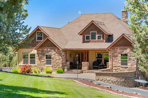 Perched on over 8 acres with panoramic Cascade Mountain views over the ridge, this custom luxury home blends elegance and functionality. Custom cabinetry, hand-scraped engineered hardwood floors, and vaulted ceilings elevate every space. Chef's kitchen boasts SS appliances, double wall ovens, large storage island, and flows seamlessly to the living area w/ a stacked-stone fireplace and wet bar! Main-level primary suite feat. dual walk-in closets, dual vanities, and a custom-tiled shower! Bonus room could be 4th bedroom! Walk-able crawlspace. Attached garage w/ storage room, 800+ sqft finished shop. Asphalt driveway, paver patio & RV pad w/ hookups. Outdoor fireplace. Stunning landscaping. Lower part of the property has endless possibilities - horse arena, barn or addt'l shop. This property cannot be described in 1,000 characters or less so see the attached features list for so much more