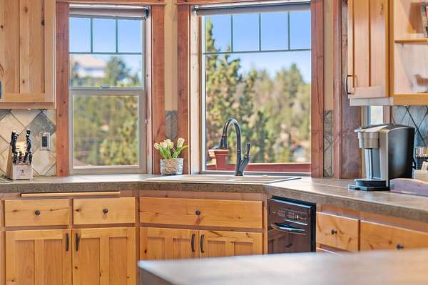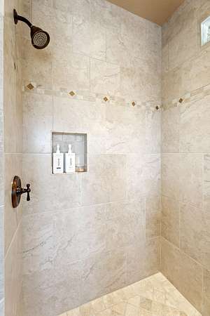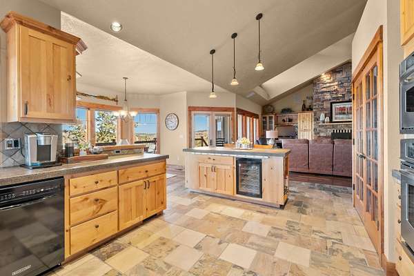 - Breakfast Bar, Built-In Features, Ceiling Fan(s), Double Vanity, Kitchen Island, Linen Closet, Open Floorplan, Pantry, Primary Downstairs, Shower/Tub Combo, Soaking Tub, Tile Counters, Tile Shower, Vaulted Ceiling(s), Walk-In Closet(s), Wet Bar, Wired For Sound