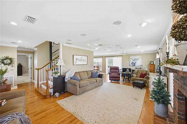 - Kitchen/Family Room Combo, Primary Bedroom Main Floor, Solid Surface Counters, Solid Wood Cabinets, Thermostat