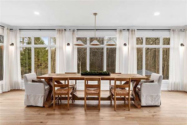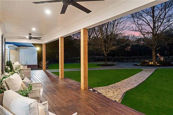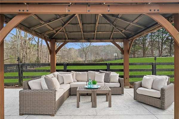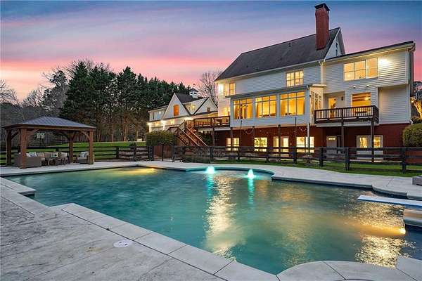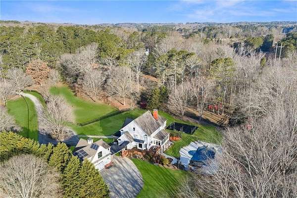 Set behind a private gate and approached by a winding gravel drive in the heart of Milton's coveted horse country, this one of a kind 8.8-acre equestrian estate on Westbrook Road offers a rare blend of refined luxury, pastoral beauty, and complete seclusion. Peaceful, quiet, and undeniably serene, the property is surrounded by rolling pastures, mature trees, and the gentle sound of two flowing creeks, creating an idyllic setting where nature, animals, and privacy coexist in perfect harmony. This is a true private oasis-one that feels worlds away, yet remains moments from everything Milton and Alpharetta have to offer. Thoughtfully designed for equestrian enthusiasts and those seeking an elevated farm or luxury hobby farm lifestyle, the land features three expansive pastures, multiple paddocks, a two-stall barn, and a riding ring-ideal for horses, other animals, recreation, or simply enjoying wide-open space and unparalleled tranquility. A gunite pool, fire pit, air-conditioned treehouse, and scenic outdoor living areas invite year-round enjoyment, effortless entertaining, and peaceful moments immersed in the landscape. At the heart of the estate is a Tim Bryan-designed, custom-built residence that has been extensively and tastefully renovated, blending classic architecture with modern sophistication. White oak flooring flows throughout, complemented by elevated ceiling heights, widened doorways, custom trim, and curated designer lighting. The main level offers an elegant yet livable layout, including a refined home office/library, a serene owner's suite with a fully reimagined spa-inspired bath, and expansive living spaces anchored by a wood-burning fireplace. The chef's kitchen is a true showpiece-completely redesigned with custom cabinetry, Taj Mahal quartzite countertops, dual refrigerators, warming drawers, a Miele dishwasher, beverage cooler, pot filler, and a commercial-grade Vulcan convection range with flat-top grill, all centered around a generous gathering island. An impressive scullery and mudroom addition delivers exceptional storage and functionality with elevated style. Upstairs, four generously sized secondary bedrooms each feature private ensuite baths, along with a bonus room and oversized laundry. The finished terrace level adds remarkable flexibility with two additional bedrooms, a kitchenette, entertainment space, home office, and room for a gym-ideal for an in-law or guest suite. Walk-up attic access provides future expansion potential. Adding to the estate's versatility is a separate carriage house apartment above the heated four-car garage, featuring soaring ceilings, two bedrooms, a kitchenette, and a Jack-and-Jill bath-perfect for guests, extended family, or staff. The carriage house is equipped with 15 solar panels, providing energy efficiency and sustainable support for the property without compromising aesthetics. The garage's tandem configuration easily accommodates a horse trailer or large RV. Every detail has been thoughtfully enhanced, from the new front gate, expanded front porch, cedar columns, and refreshed landscaping, to major system upgrades including new HVAC systems, water heaters, and well improvements-ensuring peace of mind alongside luxury. Located within Milton's top-ranked school district (Cambridge High School) and just minutes from Publix, Scottsdale Farms, and 7 Acre Bar & Grill, with Downtown Alpharetta, Avalon, Crabapple, and GA-400 all nearby, this exceptional estate delivers the best of both worlds: a nationally recognized lifestyle of space, privacy, and prestige-without sacrificing convenience. This is more than a home; it is a rare, one of a kind opportunity to own a truly exceptional equestrian farm estate in one of Milton's most desirable and tightly held locations. Welcome home!