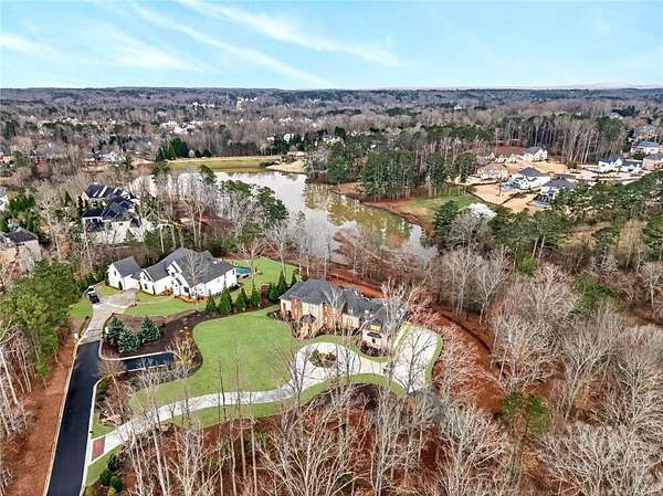 Welcome to an extraordinary estate situated in the prestigious community of The Manor, boasting an unparalleled 5.92 acres of privacy along a stunning private drive. This one-of-a-kind property stands out as the only listing in The Manor to offer such an expansive landscape, complete with immaculate landscaping that enhances its majestic curb appeal. Upon entering this exquisite residence, you are greeted by a grand foyer adorned with soaring ceilings and a breathtaking spiral staircase, leading you into a world of sophisticated elegance. The interior showcases exquisite hardwood floors and an abundance of natural light, while the open-concept design promotes a seamless flow between the luxurious living spaces. The opulent living room, enhanced by custom-built bookcases & custom fireplace adorned with marble, sets the stage for intimate gatherings, all overlooking a magnificent covered porch that invites nature indoors. The spacious outdoor retreat acts as an extension of the home, perfect for entertaining or relaxing in tranquility. At the heart of this estate lies a gourmet kitchen that caters to the most discerning chef. This culinary haven boasts high-end stainless-steel appliances, sleek quartz countertops, an expansive center island, & custom cabinetry. The elegant dining area perfectly complements this space, while the thoughtfully designed pantry provides ample storage for culinary essentials. The functionality of this home is further elevated by a laundry room equipped with a convenient dog washing shower. The luxurious primary wing serves as a serene sanctuary, featuring a cozy sitting area with large windows that frame picturesque views of the grounds. The spa-like ensuite bathroom is a dream, complete with a soaking tub, walk-in shower, and dual vanities. A private lounge suite within the master wing offers an ideal reading room with panoramic views to the lake and surrounding estate. Ascend to the upper level, where additional bedrooms, each with its own newly renovated en-suite bathroom, await, alongside a versatile loft area that can serve as an extra bedroom or flex space. The latest addition to this stunning property is an entire nanny suite above the garage, featuring a separate entrance and elevator access, full kitchen and dining area, presenting the perfect solution for accommodating in-laws or other guests. Prepare to be enchanted by the terrace level, where every detail has been curated to create an unparalleled entertainment paradise. Here, you'll find a fully equipped bar with seating, two large beverage refrigerators, & an expansive game area designed for endless fun. A gourmet kitchen next to the new wine cellar, with elegant transom glass doors, in the basement enhances the culinary experience and adds to endless entertainment. An existing workout room doubles as a private oasis for fitness enthusiasts, complemented by a luxurious sauna for relaxation. Additionally, a dedicated security room provides peace of mind, allowing you to manage your home's security systems with ease. Step outside to uncover your own private paradise-enjoy leisurely afternoons on the covered patio, take a refreshing dip in the sparkling swimming pool featuring a state of the art waterslide, all enveloped by lush greenery & mature trees that create a serene backdrop overlooking the lake. For those who appreciate nature, take a stroll along the scenic trails surrounding the estate. Alternatively, indulge your creative side in the expansive four car garage, complete with a workshop/toolroom. At The Manor Golf and Country Club, indulge in a wide range of exclusive amenities, including an 18-hole Tom Watson developed golf course, indoor/outdoor tennis courts, multiple swimming pools, a state-of-the-art fitness center, delightful dining options, a spa, & children's club. Award winning Schools- Summit Hill Elem, Hopewell Middle & Cambridge HS. This exceptional estate transcends expectations of luxury living.