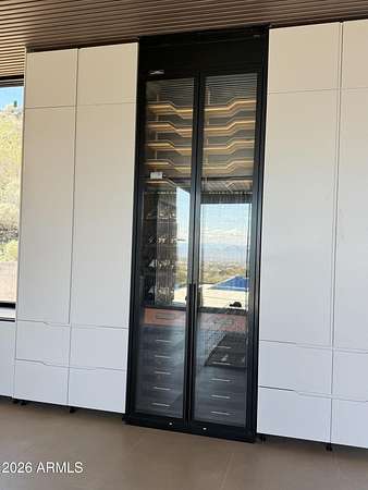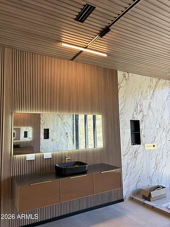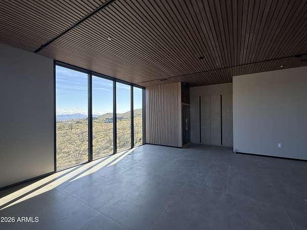 Located in the prestigious Eagles Nest community of Fountain Hills, this nearly completed 6,300-square-foot custom home offers refined luxury with warm contemporary design. Set on a prime 2.4-acre lot, the property enjoys stunning, unobstructed views of surrounding mountains and sparkling city lights. Thoughtfully selected finishes and high-quality craftsmanship are evident throughout the home. Large walls of glass and tall sliding doors create a seamless connection between indoor and outdoor living, filling the spaces with natural light and showcasing the beautiful desert setting. Designed for both entertaining and everyday comfort, the home features six en-suite bedrooms and seven and a half bathrooms, including a private pool casita perfect for guests. An elevated pool overlooks the desert landscape, providing a dramatic setting for sunsets and evening views. A four-car garage, spacious layout, and exceptional privacy complete this impressive estate.