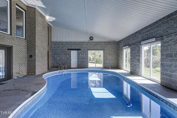 Discover 22 prime acres featuring a newly renovated, custom-built all-brick home with a 16X32 kidney-shaped indoor pool, perfectly located across from the Ridges! This exceptional setting combines convenience with the privacy you desire. Lots of wildlife roam the property. Updates include a metal roof, a brand-new kitchen equipped with stainless steel appliances, LVP flooring, contemporary lighting and ceiling fans, granite countertops, and a slip-resistant coating around the pool. The home includes a second kitchen, laundry room, family room, and a flexible room that can function as a fifth bedroom. A charming creek flows along the back of the property, adding to its appeal. Owner/agent.
