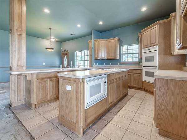 Rare find in the heart of Newcastle - a 5-acre property with space, versatility, and endless potential. This 3-bedroom, 2-bath home welcomes you with a large open layout that combines the kitchen, dining, and living spaces, making it ideal for gatherings and everyday living. The oversized pantry doubles as a safe room, providing convenience and security in one. The home has had carpeting removed and is ready for new flooring, giving buyers the chance to choose finishes that reflect their own style. A 2-car garage plus a 2-car carport provide plenty of parking, while the expansive 50x50 shop at the back is perfect for hobbies, storage, or business use. Several smaller covered storage areas add even more functionality for equipment, tools, or outdoor gear. Pet owners will love the wrought iron fenced-in section designed for dogs, and the additional finished space off the garage-formerly used as a dog grooming area-offers unique possibilities for a home business, workshop, or bonus flex space. Set on 5 acres with mature trees and plenty of room to roam, this property combines country living with proximity to town conveniences. Whether you're looking for land, space for animals, or just a place to spread out, this home offers opportunity to make it your own. An additional space off of the garage was used for a dog grooming business. Home is being sold AS-IS.