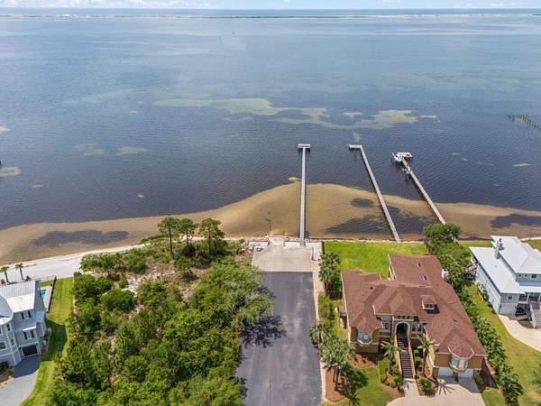From HWY 98, turn South on Smugglers Cove West. Follow the one-way road all the way to the water where the road turns into Smugglers Cove Circle. Look for sign on lot at 1604 Smuggler Cove Circle.