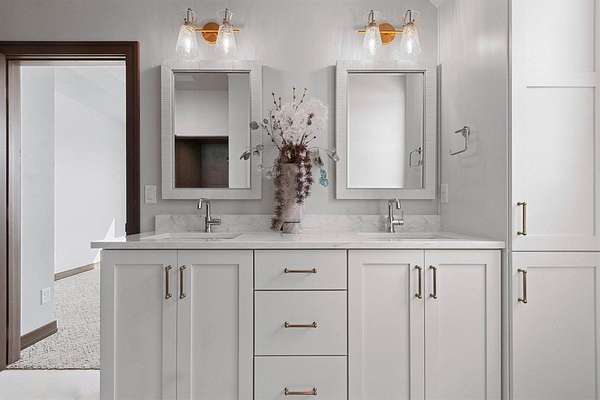 West De Pere living with room to spread out, this 2026 Spring Showcase sits on 1.5 acres and offers a thoughtfully designed space. A covered porch opens to a bright foyer and spacious living room anchored by a gas stone fireplace and tray ceiling. The kitchen delivers both style and function with high-end appliances, abundant cabinetry, an 8' island, and a 10x5 walk-in pantry, flowing easily to the dinette. The primary suite features a tray ceiling, double vanity, zero-entry tiled shower, and a 15x6 walk-in closet. Mudroom, laundry, and half bath add convenience. Heated 3.5-stall garage with extra depth, basement access, and rear door. The backyard opens wide with a 16x12 patio and plenty of space to relax, gather, or play. Lower level offers egress and room to grow.
