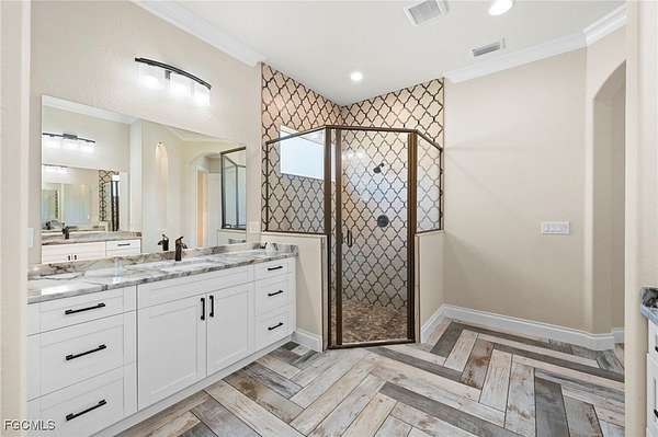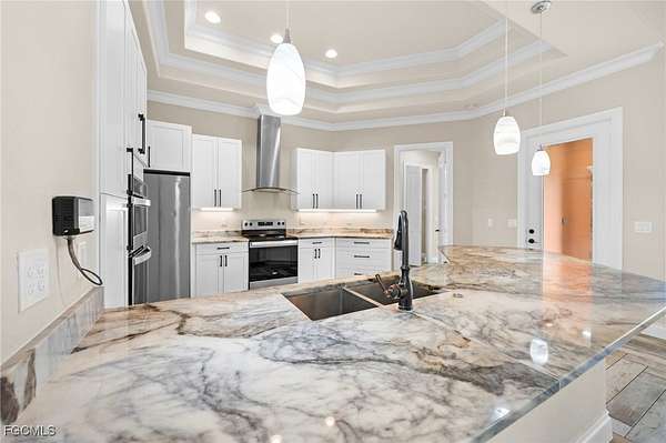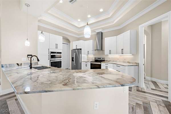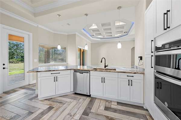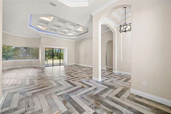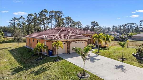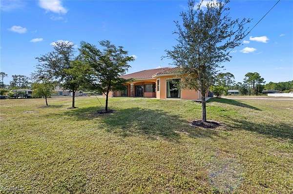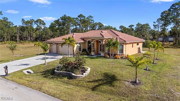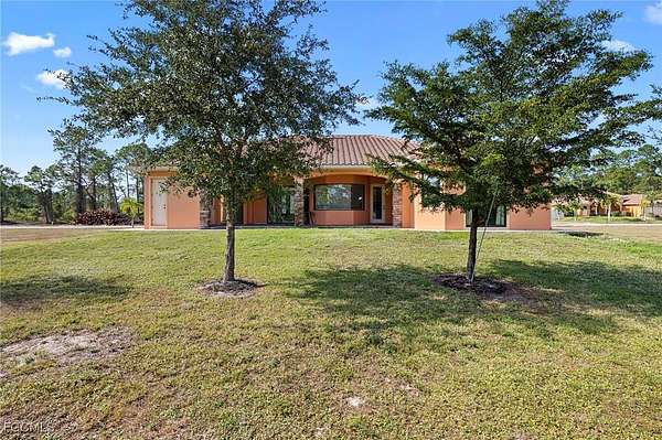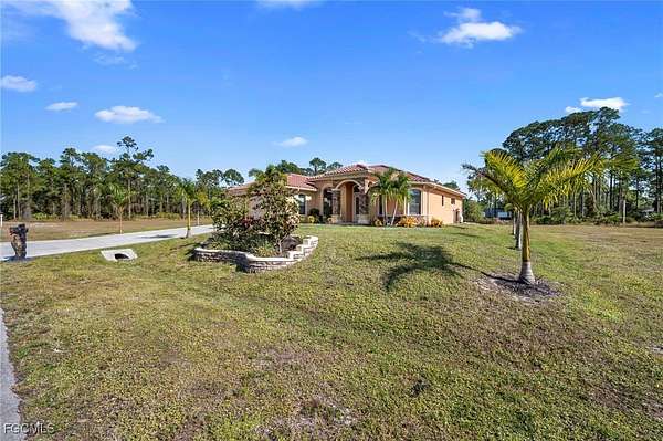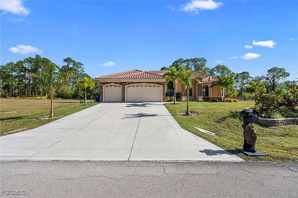 Here is what you have been looking for as your dream home, this stunning 3 bedroom, 4 bathroom home is definitely for you, every detail of this home has been thoughtfully designed for comfort and elegance. The entire house features chrome molding finishes, LED ceiling decor, and the garage includes a side door leading to the patio, as well as a small storage room, perfect for any project or future ideas you may have for the garage. Each of the spacious bathrooms features extended granite vanities, oversized mirrors, and beautifully tiled showers that reach all the way to the ceiling for a luxurious spa like feel, also the 4th bathroom is perfect for visitors leaving each other bedroom to have their own separate private bathroom, home is also featuring a spacious 3 car garage and over 2,300 sq. ft. of living area. Built in 2019, this property combines modern construction with timeless elegance. The exterior showcases beautiful brick and stone accents, adding a touch of sophistication and curb appeal. Inside, you can find refined details throughout, including elegant crown molding and high quality finishes, Huge Kitchen with spacious granite counter, tall cabinets, stainless steel appliances, 2 ovens, a stainless steal range hood, that make this home truly stand out. The open floor plan and natural light create a bright and inviting atmosphere house features a lot of impact windows, and some transom windows in some of the rooms, perfect for both everyday living and entertaining. The laundry room offers both style and functionality, with granite countertops, extra cabinetry, and plenty of workspace for added convenience. The exterior of the home showcases a beautifully landscaped garden with well maintained plants that perfectly complement the elegant finishes of this stunning property. The back lanai features a beautiful paved floor and multiple access doors to the house, and it's also prepped with connections to install an outdoor kitchen if desired. Situated on 2 acres of cleared land, this property offers endless opportunities. Originally sitting on a half acre lot, the owner purchased the adjoining parcels, now totaling three additional half acre lots, giving you room for future projects, a pool, extra parking, or even the potential to build additional homes because each parcel has their address. Right next door you will find a scenic canal, perfect for relaxing, or simply enjoying the peaceful Florida lifestyle, it is a space for endless outdoor fun. This Property is located in a rapidly growing area near sunshine and lee blvd, with plenty of shopping centers, and even more developments coming soon... offering convenience, privacy, and incredible value. Just a short drive to nearby beaches, restaurants, schools highway I-75 and 82 Road, is also not located in a flood zone, it's rare to find a property with this combination of elegance, size, flexibility and price. Don't miss the chance to own a home that offers room to expand your dreams.