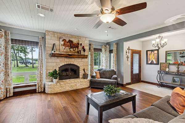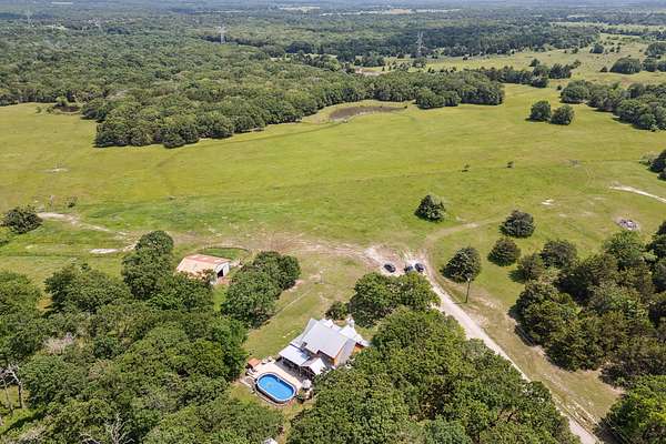 Farm and Ranch property with barn, shop and 2 ponds. Welcome to your outdoor oasis! Nestled on 63 acres of picturesque rolling hills, this stunning property offers a rare opportunity for those seeking an idyllic retreat. Boasting a fully fenced perimeter with a cattle chute, pasture of Tifton 85, barn, and two serene ponds, this expansive estate is tailor-made for outdoor enthusiasts and nature lovers alike. Key features include the main residence constructed with durable Insulated Concrete Forms (ICF), ensuring exceptional energy efficiency and unparalleled safety, being tornado-proof. The spacious layout provides ample room for comfortable living, with generous bedrooms, multiple living areas, and a well-appointed kitchen.