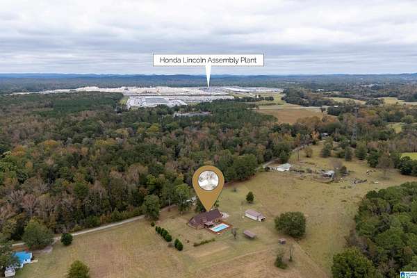 Experience the best of rural charm and modern comfort with this beautiful 3-bedroom, 2.5-bath home, perfectly situated on 2.4 acres surrounded by peaceful farmland and woods. The main-level master suite features a spacious walk-in closet, jetted tub, and a stunning walk-in tile shower. The kitchen is well equipped-ideal for meal prep or casual gatherings. A formal dining area flows seamlessly into the inviting family room, with hardwood flooring throughout. Upstairs, you'll find two additional bedroom suites with a full bath, providing plenty of space for family. The main level two-car garage offers parking and extra storage, while the large detached garage/office is perfect for hobbies, a home business, or additional storage needs. Step outside to your private backyard oasis featuring an in-ground swimming pool with a fenced area for privacy--perfect for relaxing or entertaining. Located in the heart of Lincoln just steps from the Honda Plant and within an easy commute to B'ham.