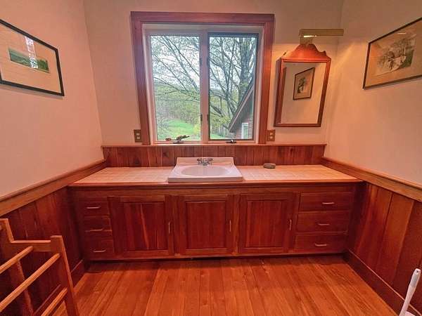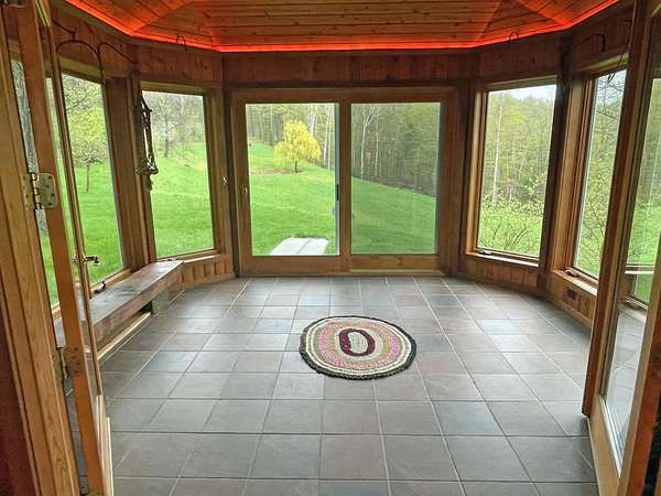 Tucked away at the end of a quiet, town-maintained road, this stunning multilevel contemporary home offers unmatched privacy and natural beauty. Surrounded by 40 acres of rolling meadows, this property features a serene swimming pond, a two-stall horse barn with an attached heated workshop, and direct access to the Cross Rivendell Trail for exceptional hiking right from your doorstep. Inside, custom craftsmanship shines--from the curly maple kitchen to the elegant baths. The expansive great room boasts a massive stone fireplace, perfect for cozy gatherings, while the sunroom invites year-round relaxation. A tiled entry opens to a bright craft room, ideal for hobbies or a home office. With an attached one-car garage and a detached two-car garage, there's plenty of space for vehicles and storage. Whether you're seeking a peaceful homestead, an equestrian property, or a private retreat with modern flair, this one-of-a-kind home blends rustic charm with refined living.