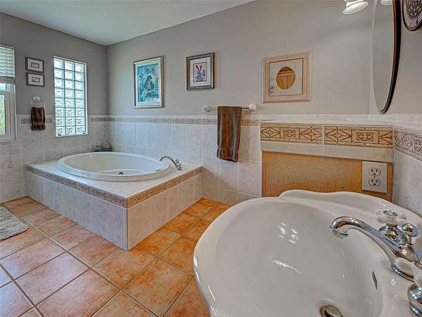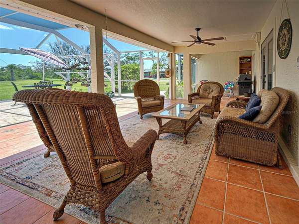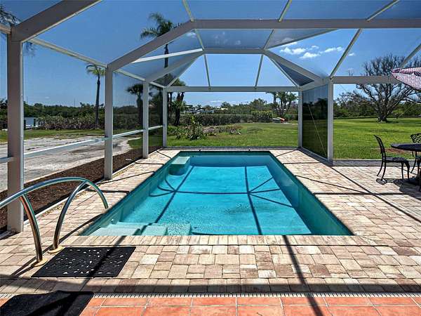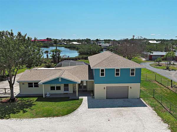 Boater's Paradise!!! Beautifully renovated waterfront home with one bridge to Lemon Bay and easy access to the Gulf at Stump Pass. Dock is equipped with a 6000 lb. Boat Lift and there is a floating dock for canoe/kayak access along the 170 ft. pristine Ainger Creek. This serene 1.08 acres property includes the home and Lots 3,4 and 5. Lots 1 and two totals .7 acres and are available under a separate agreement. The entire first floor and lanai are artfully tiled and natural stone pavers encircle the pool. This home doubled in size in 2000 with a two story addition including a primary bedroom with a wonderful view of the creek from a private balcony. Also has a sitting area and en suite with a jetted tub. The second level also includes a guest room with bath and laundry room. The sparkling, heated, saltwater pool was added in 2021 and has a Clearview pool cage and a new pump and pool heater this year. Large area on the lanai is wired for a hot tub or perfect for adding an outdoor kitchen. The dining room opens up to the lanai with two sets of French doors. There is a bonus room with plank floor tile and an oversized attached one car garage with plenty of room for storage. The first level also has a guest room. totally remodeled bath, and an office/den with closet which could be a fourth bedroom The beautiful remodeled kitchen has exotic granite countertops, tumbled marble backsplash, hardwood Cherry cabinetry, and all new appliances. Impact windows are installed on all the windows on the second floor and hurricane fabric on the balcony and all windows and doors on the lower level. The roof was re-shingled in 2022. The entire exterior and first level interior was just painted this year The first floor AC unit is new and the main electric service is also new this year. A detached 12x24 garage/workshop was recently built. Dogs can find all the legroom they need in the supersized fenced area accessed through a dog door in the garage. You will love the location of this property near shopping, restaurants , numerous golf courses and just two miles from the beautiful beaches on Manasota Key. Come experience the old Florida charm that this wonderful Englewood home has to offer.