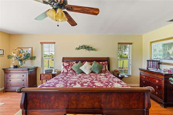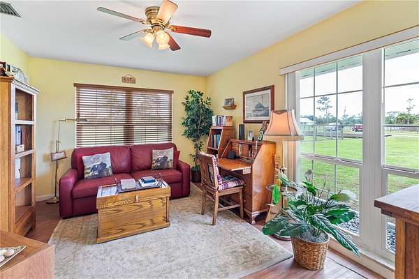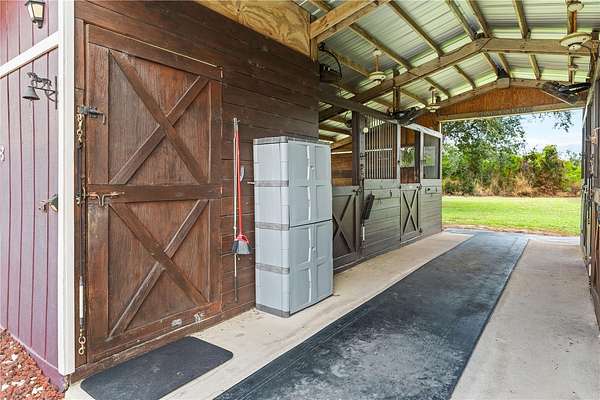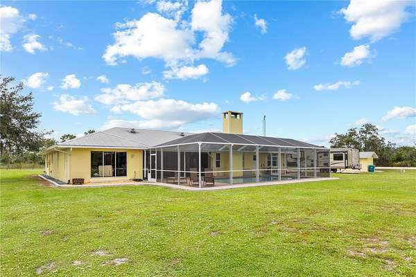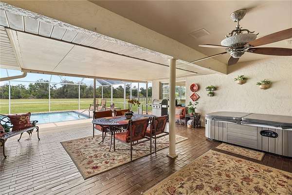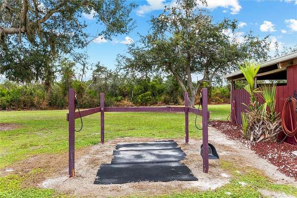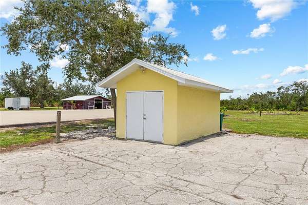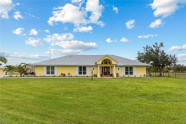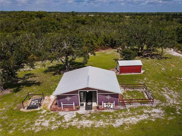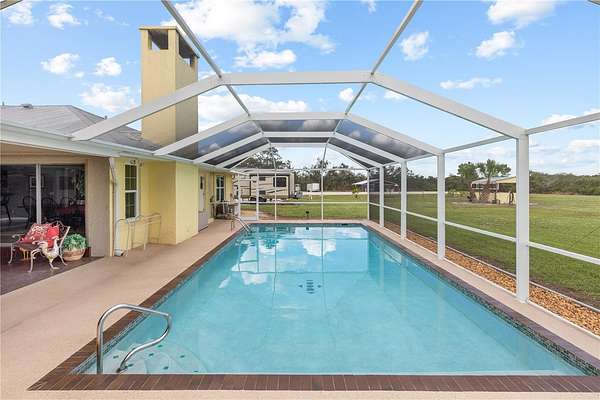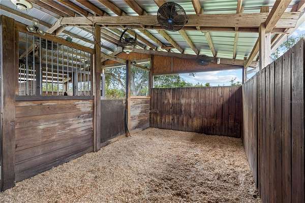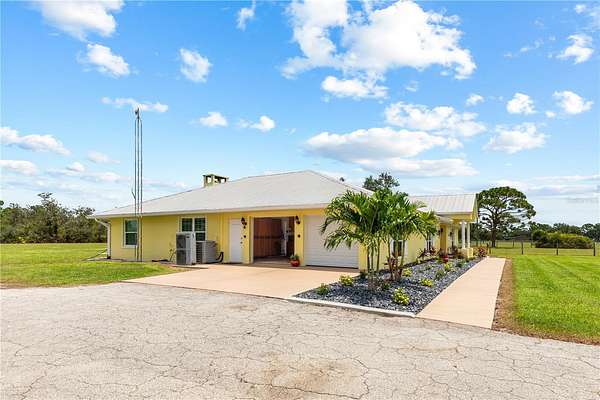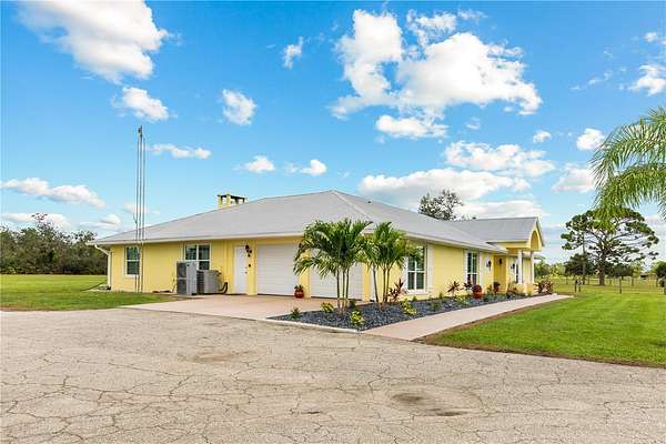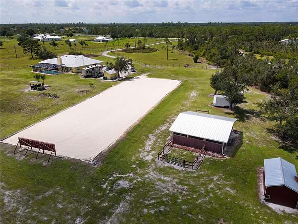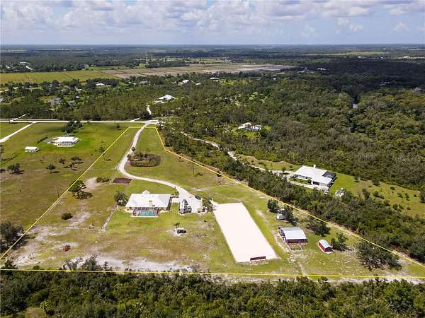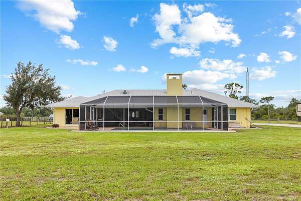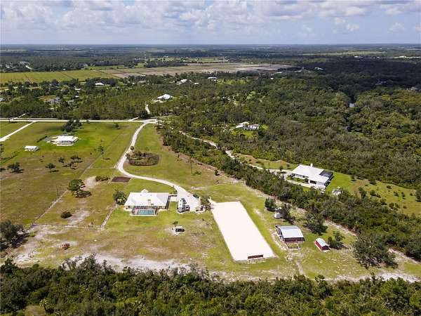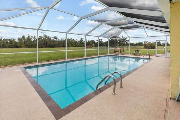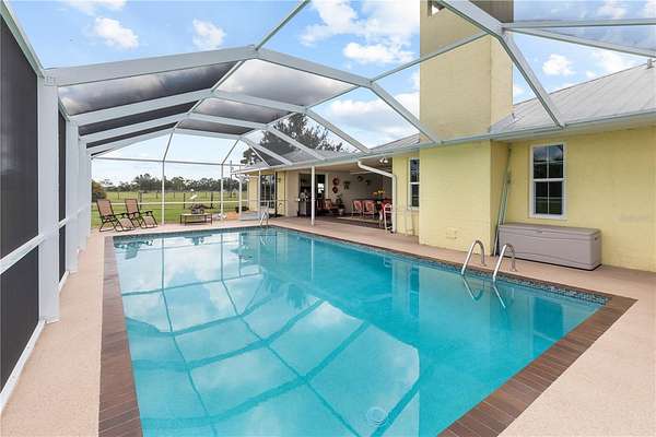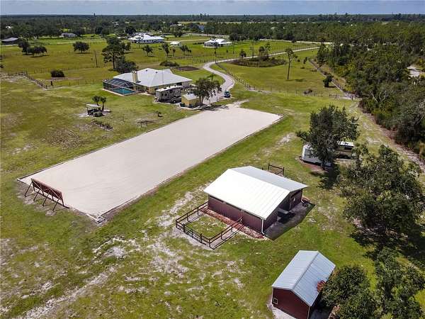 Well maintained 4 Bedroom, 2.5 Bathroom, Pool home with a den, located in the desirable Prairie Creek Park community. OVER 7 fenced acres, perfect for equestrian family, hobby farmers, or anyone seeking a peaceful country lifestyle. NO FLOOD REQUIRED! CLICK ON THE VIRTUAL TOUR LINK 1 FOR THE VIDEO AND VIRTUAL LINK 2 FOR THE 3D TOUR. This home has a sunken living room with a stone accent wall that serves as a unique focal point, while natural light pours in through a large glass slider that opens to the lanai--perfect for seamless indoor-outdoor entertaining. Just off the living room is a flexible office space that flows into the kitchen to use as an additional room to suit your needs. The kitchen offers ALL stainless-steel appliances, ample counter space, abundant cabinetry, a coffee/wine bar, breakfast bar, closet pantry, and built-in desk. The spacious master suite has two glass sliders--one opening to the lanai and the other to the backyard--for plenty of natural light and private outdoor access. The en-suite bathroom has dual closets, a double vanity with dedicated makeup space, a relaxing jacuzzi soaking tub, and a walk-in glass-door shower. Just off the master suite, a versatile guest room features a walk-in closet and convenient access to a nearby half bathroom. With a private entry from the master, this flexible space is perfect as a nursery, media room, meditation/exercise room, or additional guest quarters--tailored to suit your lifestyle. The additional guest rooms are on a split floor plan, providing plenty of privacy, with built-in closets and a shared guest bathroom with a shower/tub combo and access to the lanai. Start your day with a peaceful cup of coffee or unwind with your favorite evening beverage on the patio with tranquil pasture views, plenty of space for entertaining and an above ground spa. Enjoy a newly resurfaced, oversized 8-foot deep, pool & pool deck with plenty of room for soaking up the Florida sun, surrounded by a 2025 pool cage. The 34'x30' barn, complete with a new 2024 roof and gutters, is thoughtfully equipped for all your equestrian needs. It features four horse stalls--including a spacious foaling stall that can easily be converted into a fifth stall--along with a feed room, an A/C-equipped tack room with a refrigerator, high-powered fans, a hot water wash rack, and a full dressage arena with mirrors. The land features four fully fenced paddocks/pastures, offering ample space for animals or future agricultural use & a pond. A storage shed, covered storage area for your mower and tools, and a hay storage shed provide excellent utility and organization for all your outdoor needs. The property is enhanced by fresh, lush landscaping, adding curb appeal and a serene natural backdrop. A paved parking pad offers a convenient and secure place to park larger vehicles, trailers, or equipment. 2015 METAL ROOF - INSULATED STORM WINDOWS - TWO A/C UNITS - ALL FURNITURE & GARAGE APPLIANCES ARE NEGOTIABLE. Prairie Creek offers 22 miles of groomed green belt horse riding trails for the horse enthusiast, where you can experience the pinnacle of luxury living; privacy, access to hiking and horseback riding trails. Prairie Creek Park community also backs up to Shell and Prairie Creeks--offering kayaking and boating access just a mile away Punta Gorda's airport, vibrant downtown, boutiques and dining options are just 15 minutes away, with easy access to I-75 and boating, fishing, and golf nearby. Schedule your showing TODAY!