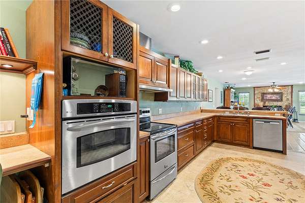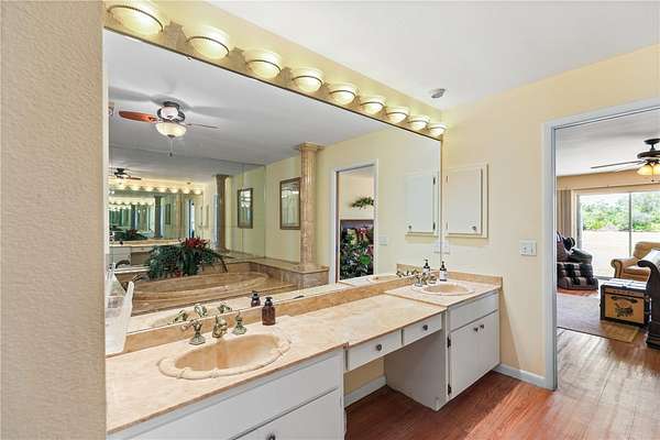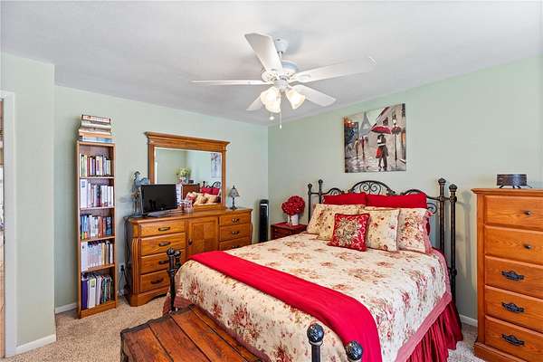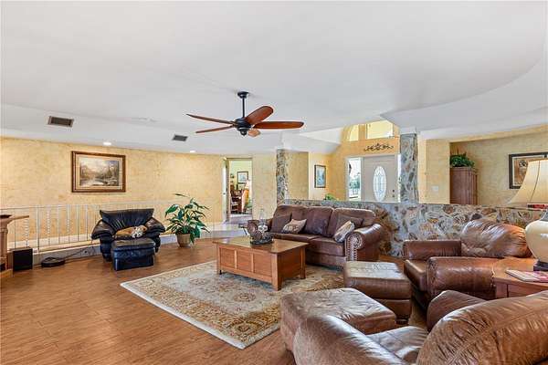 - Ceiling Fans(s), Eat-In Kitchen, Kitchen/Family Room Combo, Open Floorplan, Primary Bedroom Main Floor, Solid Surface Counters, Split Bedroom