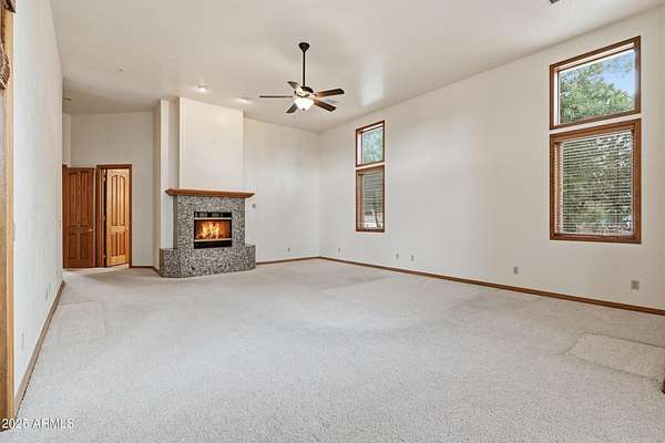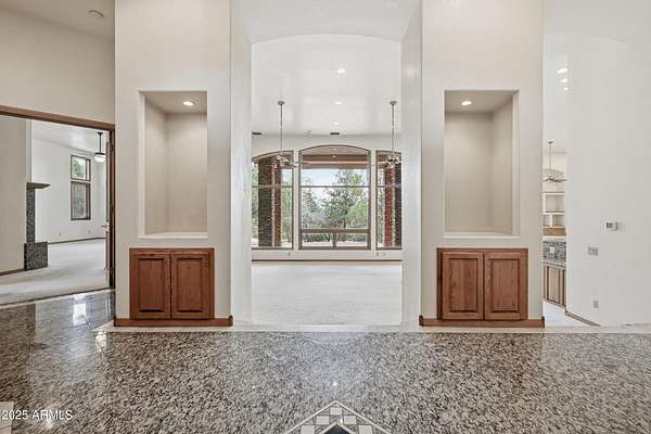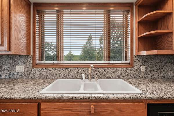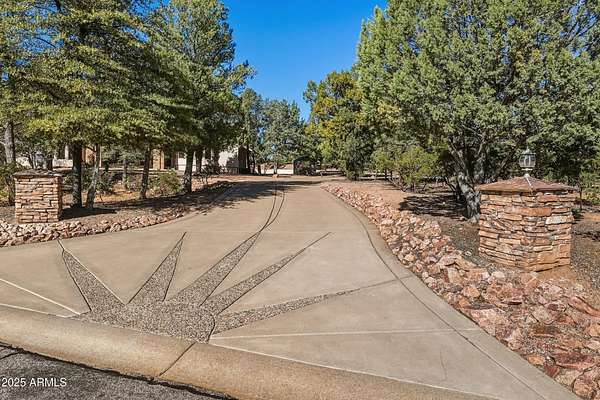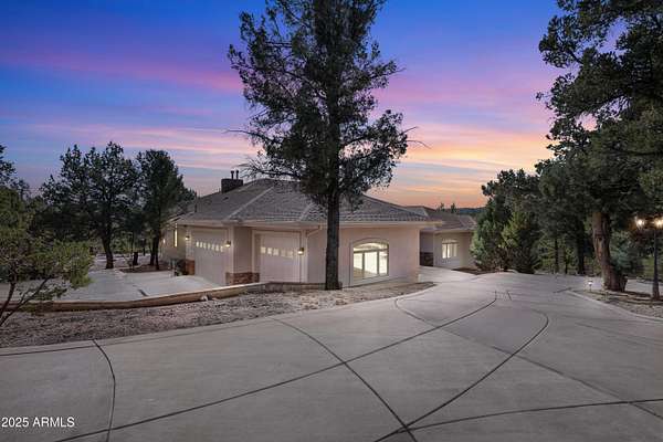 Discover the perfect blend of privacy, space, and luxury with this stunning 3 bedroom, 2.5 bath home plus a den, set on 2.06 acres with no HOA. Located within Payson town limits, this property offers the convenience of in-town living while backing directly to National Forest land, providing endless views and recreation right from your backyard. Enjoy breathtaking views of the Granite Dells mountains from your own retreat. Inside, the main living areas feature impressive 14-foot ceilings, creating an open and airy feel. The large living room includes a gas fireplace, perfect for cozy evenings, and flows easily into the formal dining room and bar area, making entertaining effortless. The kitchen is beautifully finished with granite countertops and ample workspace. The luxurious primary suit