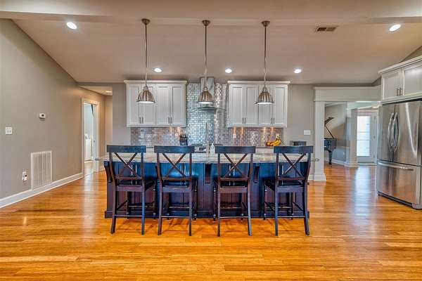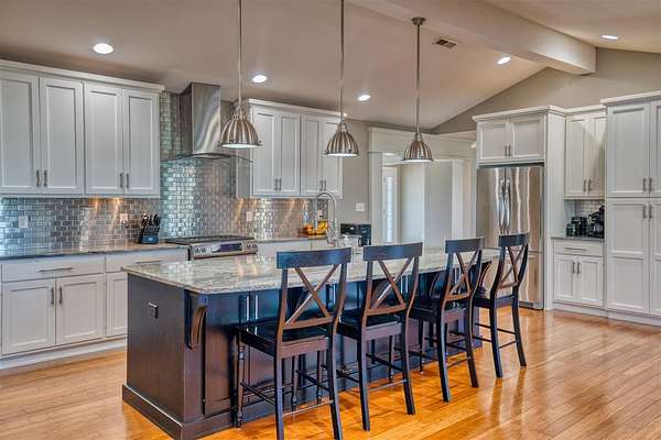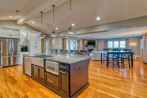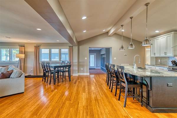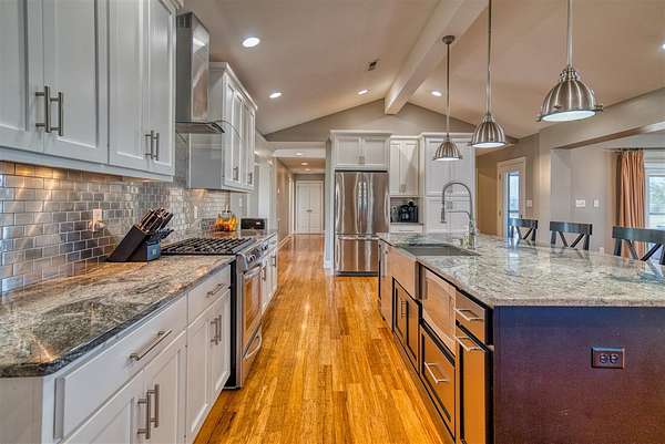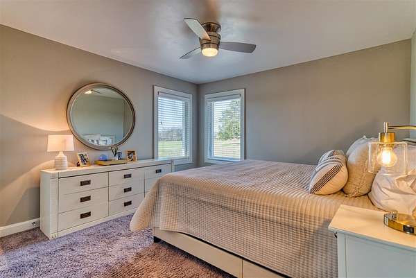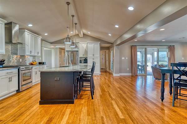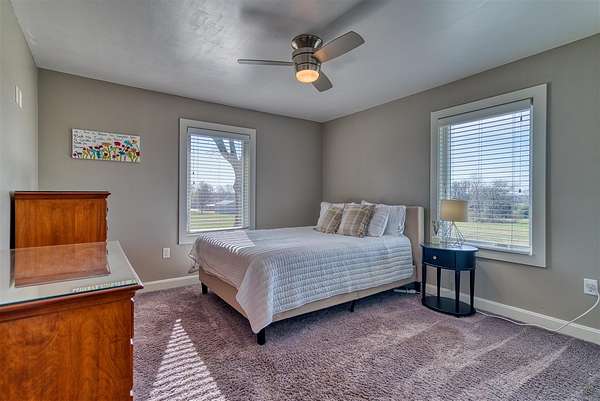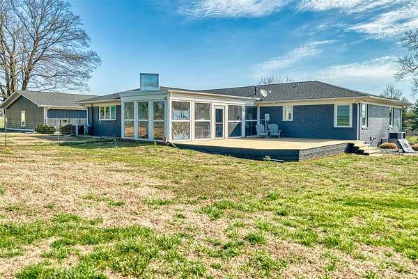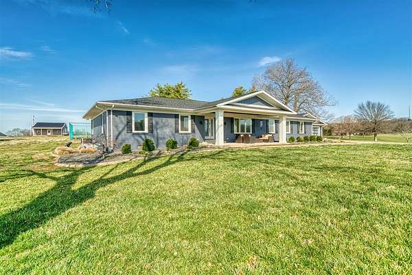 This beautifully remodeled one-level home offers the perfect blend of space, style, and functionality with 3,234 sq ft, 4 bedrooms, and 3 bathrooms, all set on 10 acres within the city limits. Step inside to an inviting open floor plan featuring a stunning great room with vaulted ceilings and a cozy gas fireplace, flowing into a spacious kitchen with a gas stove and plenty of room to gather. Everyday life is made easy with a large mudroom with built-ins for organization and a generous laundry room with ample storage. The primary suite is a true retreat, complete with a spa-like bathroom featuring a double vanity, incredible storage, and a beautifully designed shower. Outside, enjoy multiple places to relax and entertain, including a covered front porch, a large screened-in back porch, and a back patio. Additional highlights include an oversized attached 3-car garage with composite siding and a lifetime warranty, a newer roof, natural gas, and a 24x30 pole barn with concrete floors and electricity—offering space for hobbies, equipment, or animals.