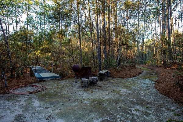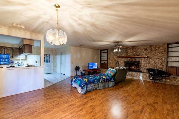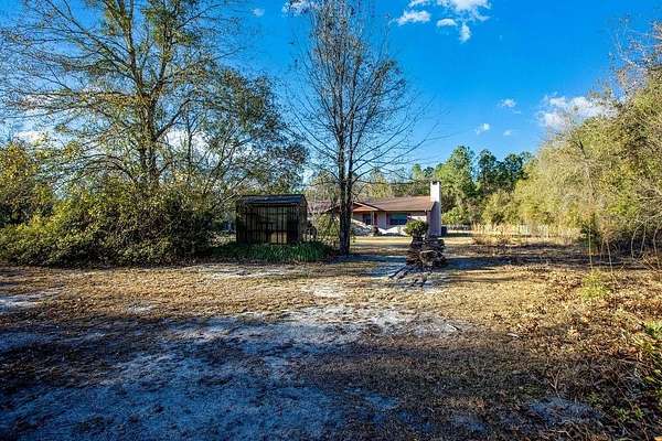 Rarely do you find property that balances over 2,000 square feet of comfortable living space with the unrestricted freedom of a 5-acre lot! Upon entering the home you will be drawn to the expansive living and dining room combination's focal point: a stunning wall-to-wall stone wood-burning fireplace, rising floor-to-ceiling to create an atmosphere of rustic warmth, complete with built-in bookshelves perfect for showcasing a personal library or family treasures. An easy connection leads to the huge kitchen, which boasts an abundance of cabinets and counter space, and a large breakfast bar, making it the true heart of the home. Strategically located off the kitchen, you will find a versatile den that serves as an ideal home office or quiet reading room, alongside a conveniently placed laundry room complete with washer and dryer. The home's layout ensures privacy with a dedicated hallway leading to the bedrooms. This wing features two guest bedrooms and a full guest bath, while the primary suite offers an ensuite featuring a shower/tub combination and convenient linen closet. Outside, the 5-acre parcel is a true sanctuary for those who value both work and play. The land is fully fenced and includes a picturesque pond with its own deck, equipped with power and water for ultimate relaxation. Car enthusiasts and hobbyists will fall in love with the double carport and the specialized workshop, which features two rails specifically for working on vehicles. A natural wooded area at the rear of the property offers a scenic backdrop and a deep sense of seclusion. This expansive acreage is perfectly suited for those looking to establish a homestead, install a swimming pool, or store recreational equipment without the constraints of a subdivision. Despite the quiet country setting, the location remains highly practical, providing a straightforward commute to Gainesville's medical facilities, shopping, and dining, as well as easy access to Lake Butler and Alachua. Whether you are looking for room to breathe or a solid foundation to customize into your dream estate, this property stands out as a versatile and high-value opportunity in the North Central Florida market. Schedule your appointment today to secure your piece of the country and enjoy the peace and potential that only 5 acres can provide!