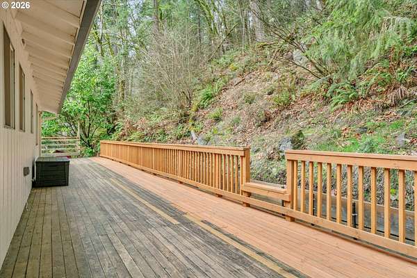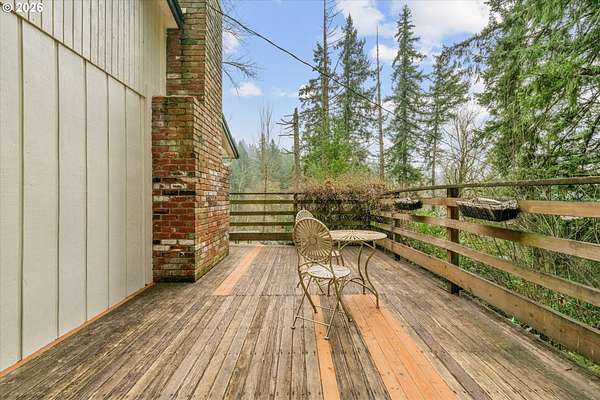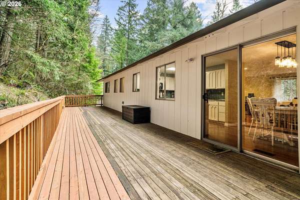 Your opportunity to move to a private country setting on 1.71 acres yet minutes away from local shopping and I-205! This 3 bedroom 2 1/2 bath home with family room and bonus room includes a spacious two car garage and sits in a thick wooded area just back off the main street. Inside this home you will find an open living and dining area, along with cozy wood-burning fireplaces. The exterior features a large deck with beautiful year-round nature views. The long, private driveway has plenty of room to park your cars, trucks, RV, or other outdoor toys. Most recent updates include a new roof in 2017, new gas furnace and air conditioning in 2020, and updated deck, front entry, and exterior paint in 2025.