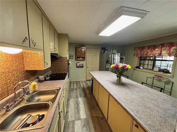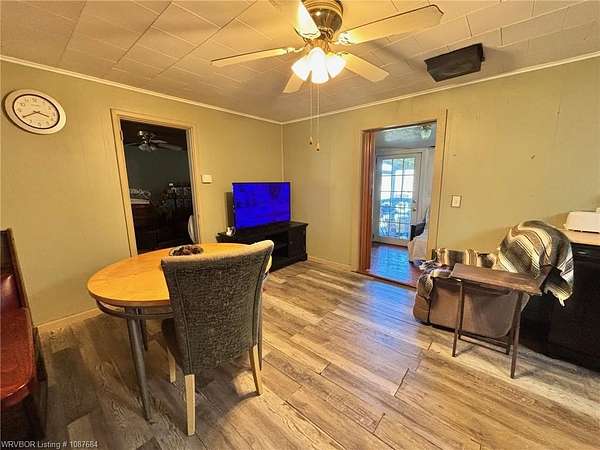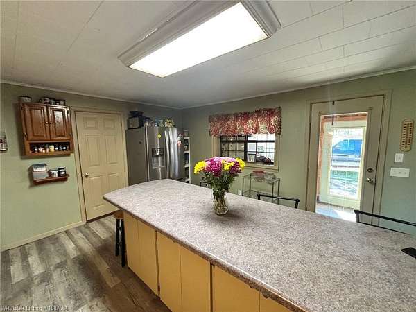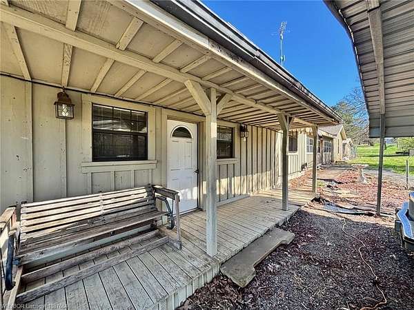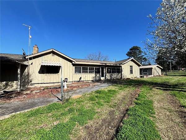 Enjoy plenty of living space in this 2-bedroom, 3-bath home that could easily function as a 3bedroom but does not currently have a closet. The home features two spacious living areas and a large country kitchen with an island, dining space, and an additional breakfast nook, making it ideal for both everyday living and entertaining. Situated on approximately 7.44 acres, the property includes a beautiful stocked pond and a 20x30 metal shop with electricity, two sliding doors, and a walk-through door. There are two water wells on the property, with one currently functioning. Recent updates include a newer roof, rewiring, and new attic insulation. Additional features include a pellet stove, bedrooms with porch access, a back deck, and a layout that could work well for a mother-in-law suite with its own wraparound porch. The back entry offers a small sitting area, and there is plenty of storage throughout the home, including a large storage closet and a bedroom with a spacious walk-in closet. Enjoy the outdoors with a convenient storage shed and a garden area, ideal for gardening enthusiasts or anyone who loves fresh homegrown produce. This property is being sold as-is with no repairs and offers many possibilities for those looking for space and country living.