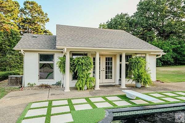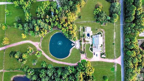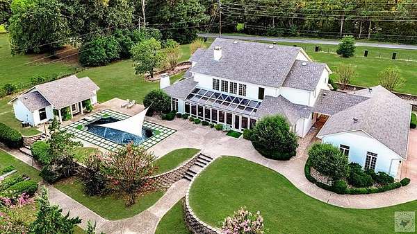 Perched on a hill, set behind a sweeping lawn on five picturesque acres in New Boston, this stately Southern Colonial Mansion offers refined elegance, space, and privacy rarely found. Spanning over 7,000 square feet, the main residence features four spacious bedrooms, four full bathrooms, and three half baths, thoughtfully designed for both everyday living and grand-scale entertaining. A dramatic central entry welcomes you into beautifully appointed interiors with a winding staircase, heated marble floors, timeless architectural details, and an effortless flow throughout the home. Entertain guests with the wet bar and open living throughout. The chef's kitchen is a true centerpiece, offering ample workspace, quality finishes, and seamless connection to surrounding living and dining areas-ideal for hosting gatherings both large and intimate. A light-filled sunroom overlooks the grounds, creating the perfect space to relax and take in the serene views year-round. Step outside to your private oasis featuring a resort-style pool, mature landscaping, and a tranquil pond, providing the ultimate setting for outdoor enjoyment and entertaining. A separate guest home adds exceptional flexibility, perfect for extended family, visitors, pool house, or gym. With wide open acreage, manicured grounds, and unmatched curb appeal, this property delivers the feel of a private retreat while remaining conveniently located. This exceptional New Boston estate seamlessly blends classic Southern architecture with modern comforts, offering a rare opportunity to own a legacy property designed for luxurious living, unforgettable entertaining, and peaceful country elegance.