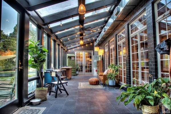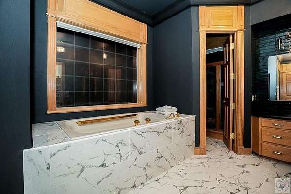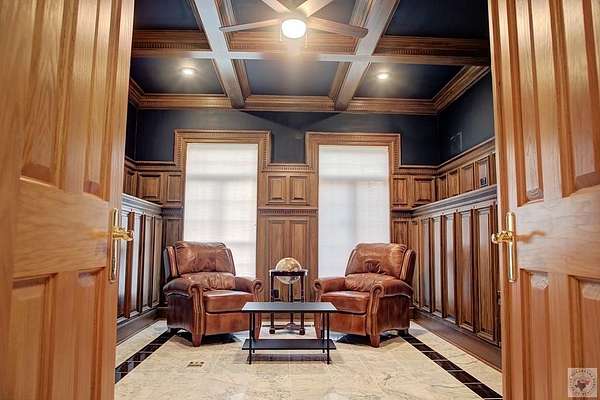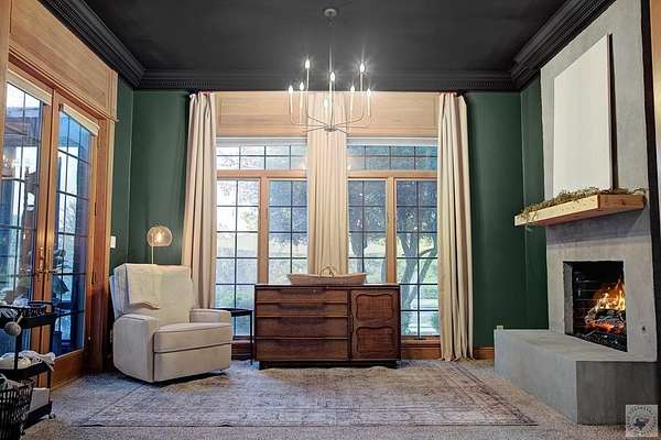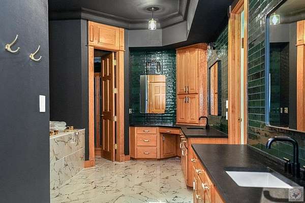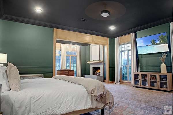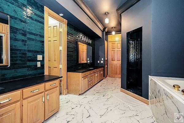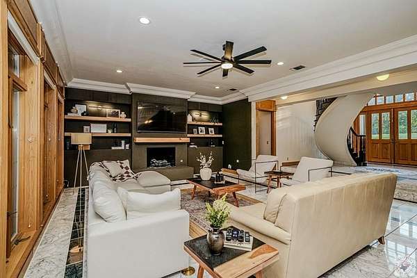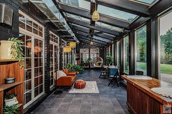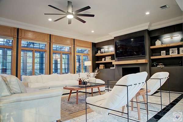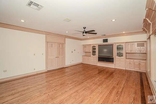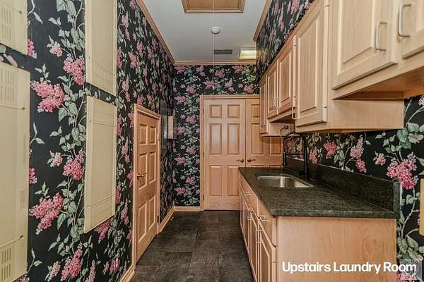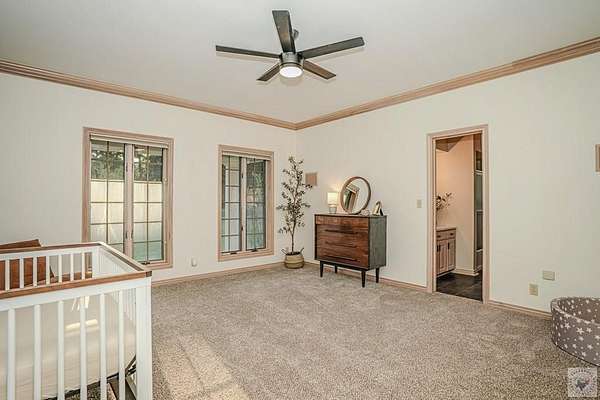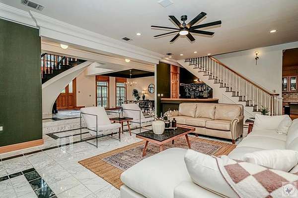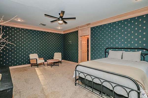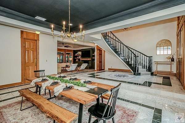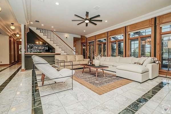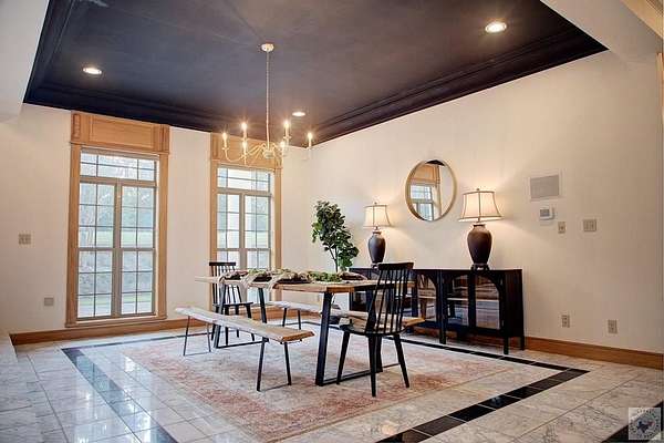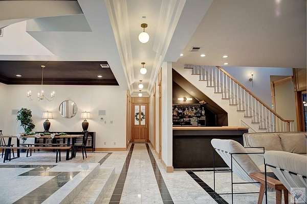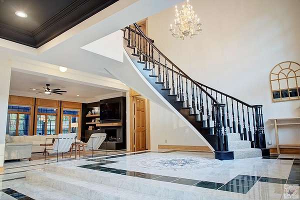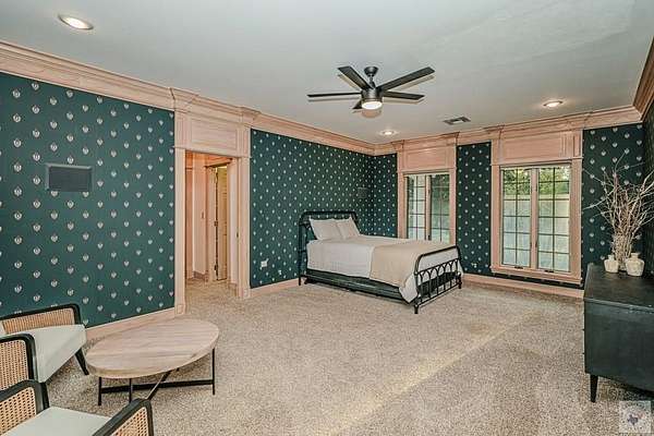 - Atrium, Ceiling Fan(s), High Ceilings, Sheet Rock Walls, Wallpaper, Wet Bar
