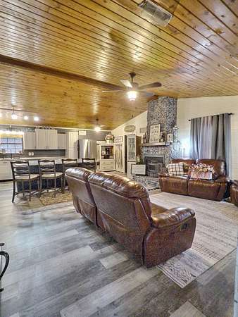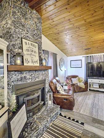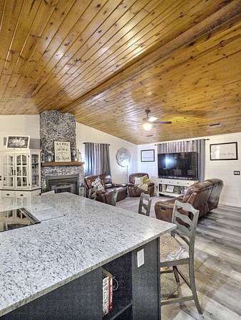 This 3 Bedroom, 2 Bath home tucked away in a serene, private setting within the city limits of Van Buren, is an original Griffin Log Home that offers the perfect blend of rustic charm and modern comfort. Situated on just under 2 acres with a blacktop circle drive, this property welcomes you with warmth and character from the moment you arrive. Inside, you'll find a beautifully decorated interior designed for both relaxation and entertaining. The chef's kitchen is a true showpiece, featuring a huge island and ample workspace with thoughtful details. A loft above the 2-car garage adds versatile space for hobbies, or storage, while a storm shelter provides peace of mind. The screened in breezeway that joins the home to the garage is the perfect place to spend evenings enjoying the outdoors in comfort. This home is nestled in the quaint river town of Van Buren, where small-town charm meets natural beauty--just minutes from the Current River and all the outdoor adventures that the Ozarks have to offer.