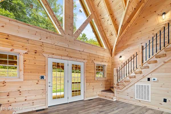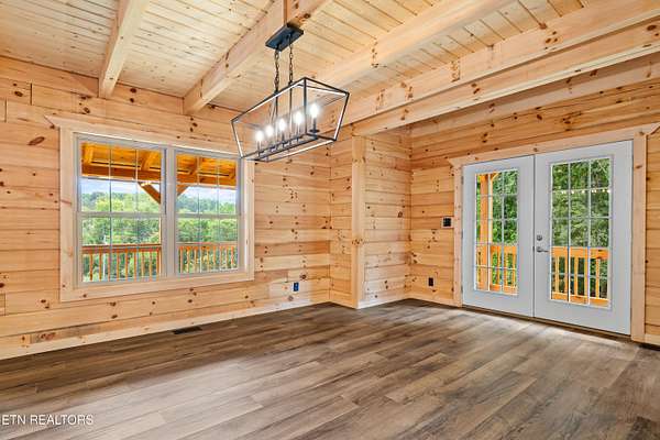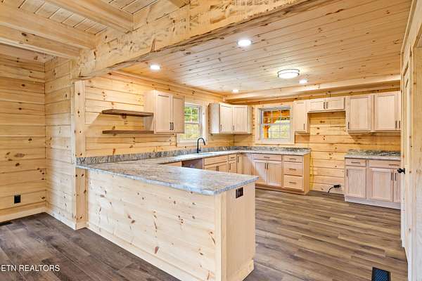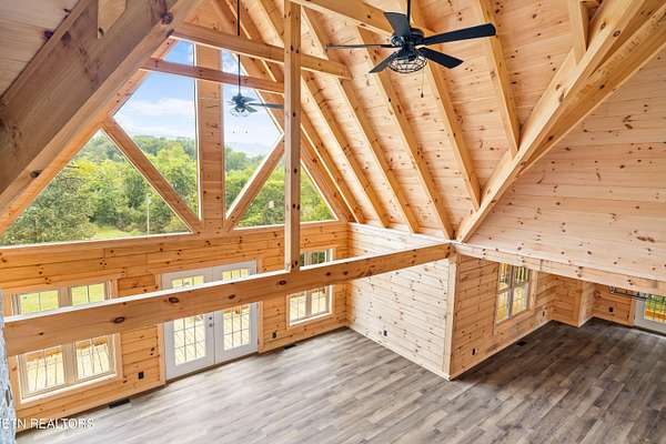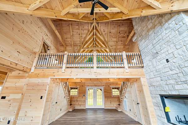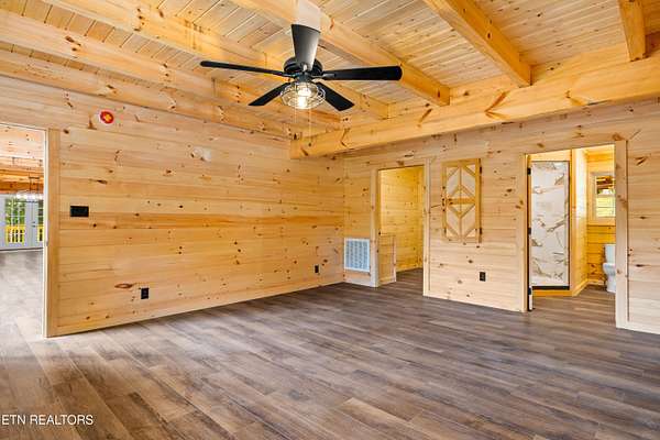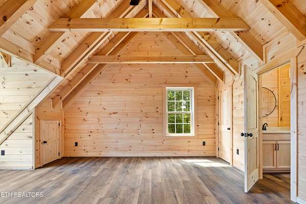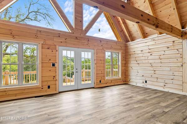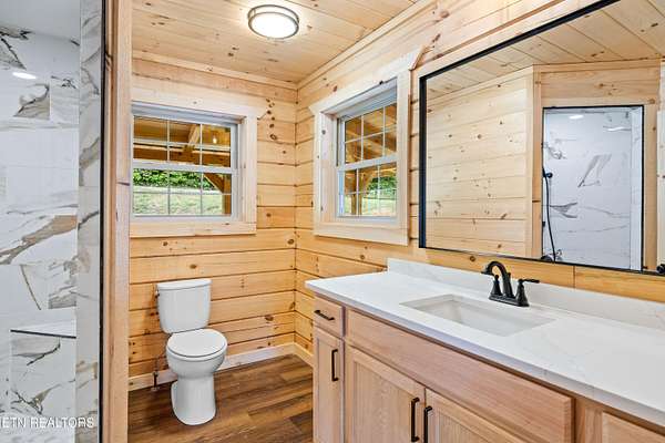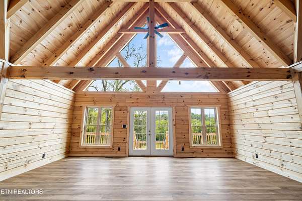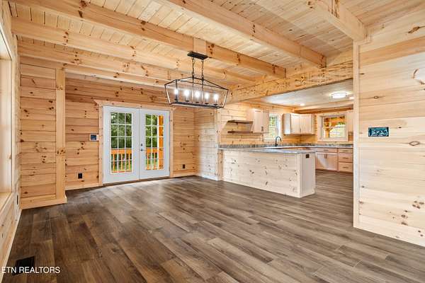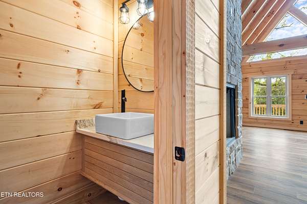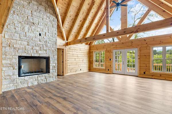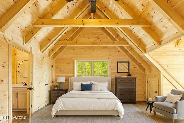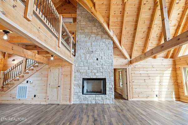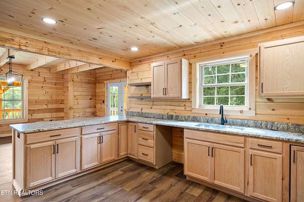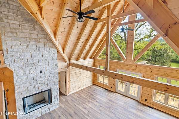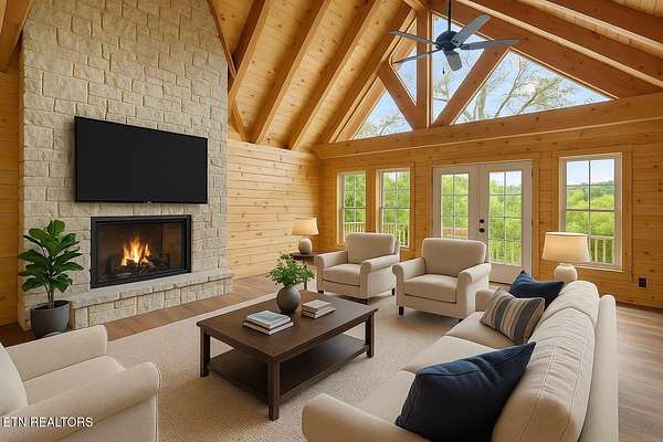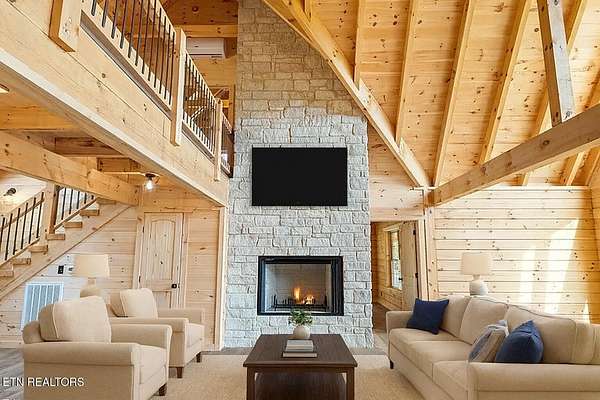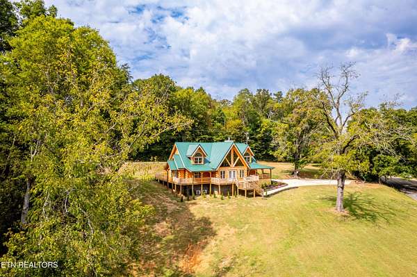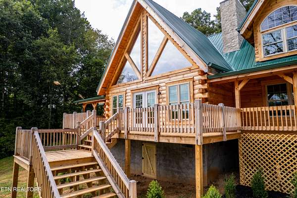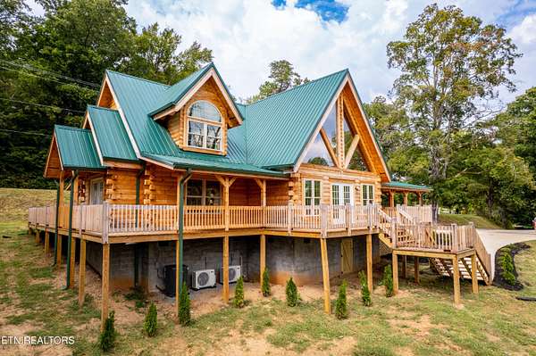 SELLER CREDITS INCLUDE $25,000 STAINING PACKAGE FOR HOME, $8,500 TOWARDS BUYERS APPLIANCE PACKAGE. Experience refined country living in this custom log cabin, newly constructed with exceptional craftsmanship and attention to detail. Nestled on 2 peaceful acres with a gentle creek and serene mountain views, this property offers the perfect balance of natural beauty, privacy, and convenience - just a short distance from town, shopping, and dining. Step inside and be captivated by the warm elegance of white pine tongue-and-groove walls and trim, soaring ceilings, and massive windows that bathe the interior in natural light. The heart of the home is a chef-inspired kitchen featuring Blue Dunes leathered granite countertops, walk in pantry combining rustic charm with modern sophistication. The inviting great room is anchored by a stunning Bridgewater limestone fireplace, with matching stone carried through to the exterior chimney - creating a seamless connection between indoor comfort and outdoor charm. This thoughtful floor plan offers 3 spacious bedrooms and 3 beautifully designed baths, providing space for family and guests alike. Step outside to enjoy the expansive wrap-around porch, ideal for morning coffee, evening sunsets, and year-round entertaining. Meticulously landscaped grounds enhance the home's natural beauty and create a private retreat where peace and quiet abound. With its picturesque country setting and effortless proximity to modern conveniences, this property delivers the best of both worlds - timeless log cabin charm with contemporary luxury. Disclosure: Interior furniture or staging visuals used for marketing are AI-generated representations.