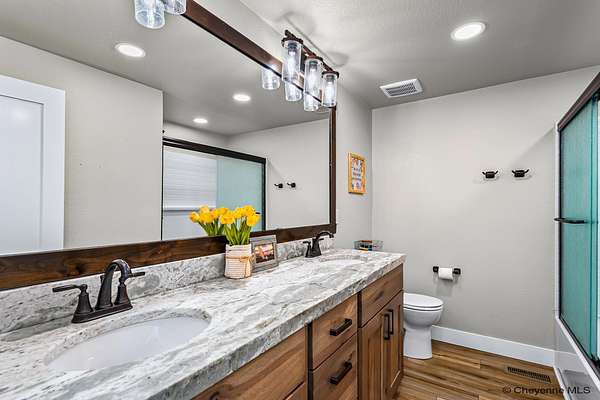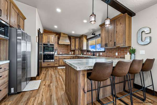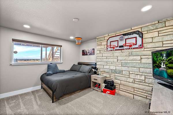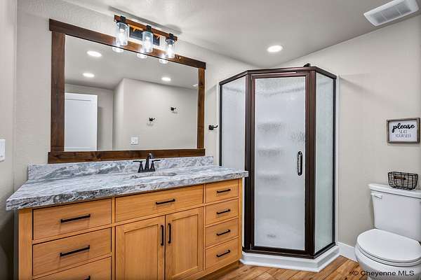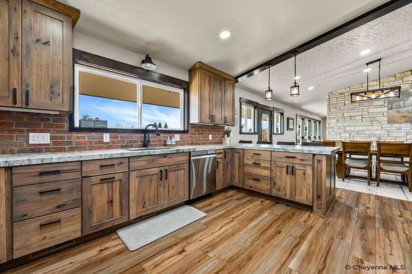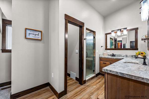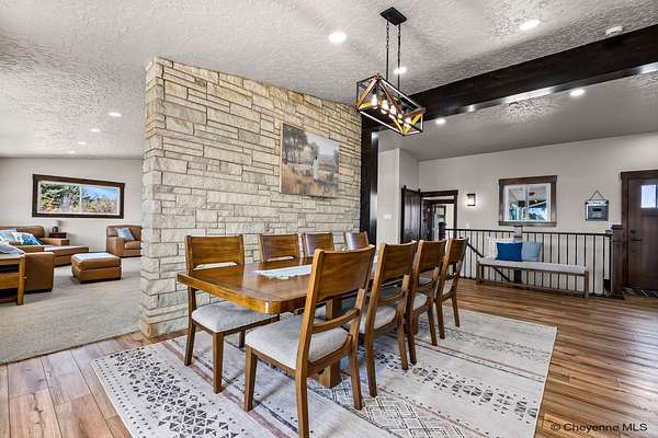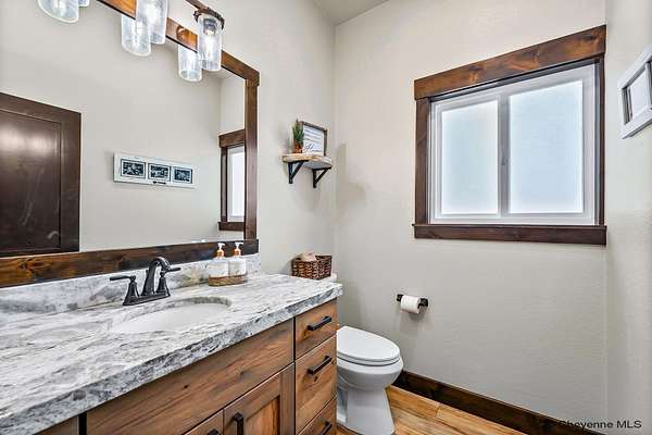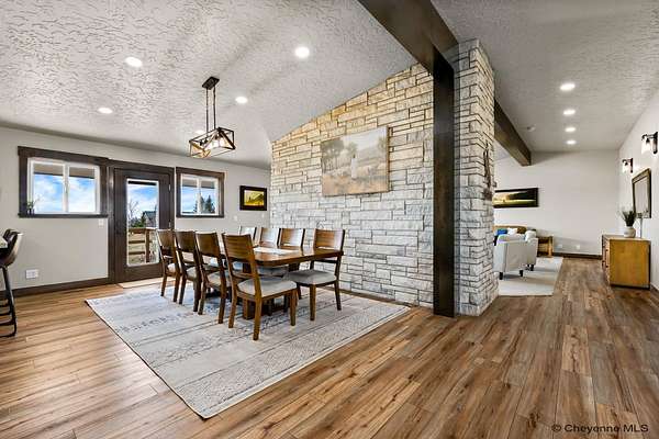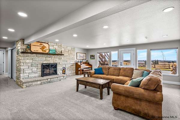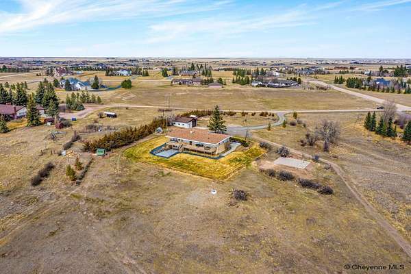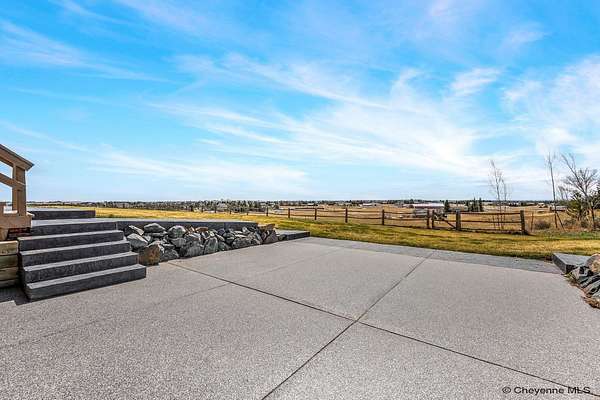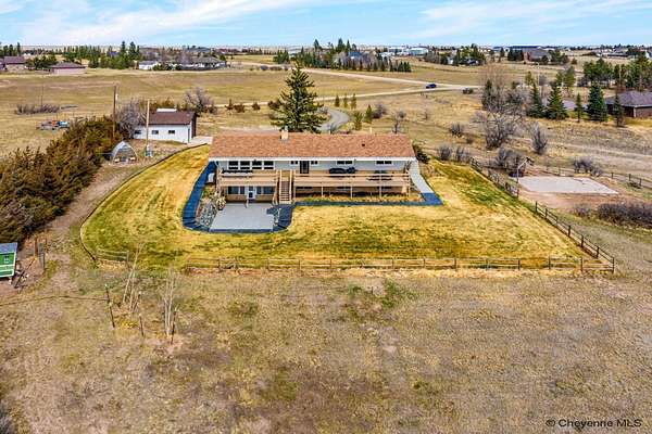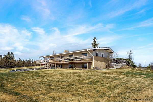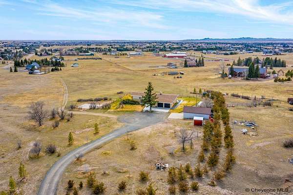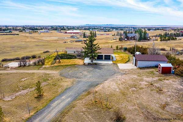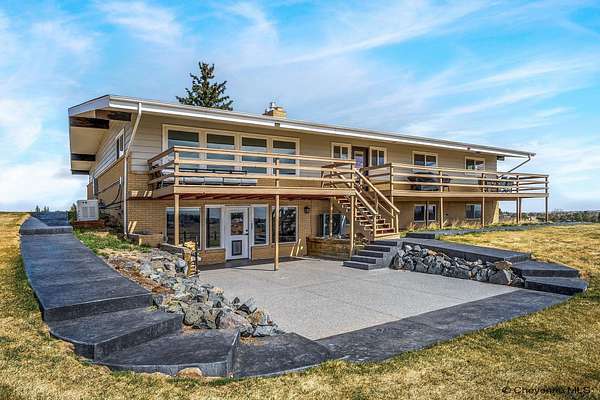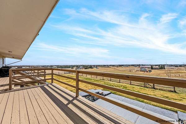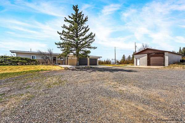 Welcome to your dream home!! This completely remodeled ranch-style abode on 5+ acres offers the perfect blend of modern elegance and rustic charm. Boasting 5 spacious bedrooms ,4 luxurious bathrooms, with laundry in the primary closet along with laundry on the lower level, this home provides ample space for family and guests. An office with its own entrance from the front porch, is ideal for remote work or can be transformed into a cozy library or craft room. Step inside to discover the large living room flooded with natural light, along with a beautiful dining room and stunning kitchen featuring leathered granite countertops and a walk-in pantry that add a touch of sophistication to your culinary adventures. Beyond its stunning interior lies perhaps this home's most breathtaking feature: unparalleled views of both the vibrant cityscape and majestic mountains. Whether you're sipping morning coffee or hosting sunset barbecues, these vistas promise to be a constant source of inspiration. Outside, an additional outbuilding offers endless opportunities – whether you envision a workshop, studio, or extra storage space. The outbuilding features concrete floors, heat and electricity. Conveniently located close to all city amenities yet offering a sense of peaceful serenity, this property truly stands out as a timeless treasure. Don’t miss your chance to own this exquisite piece of Cheyenne real estate where every detail has been thoughtfully crafted for modern living without sacrificing comfort and style. Come experience the harmony of nature’s beauty paired perfectly with exceptional craftsmanship today!