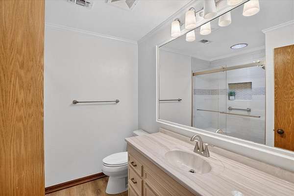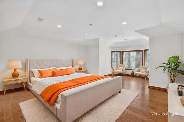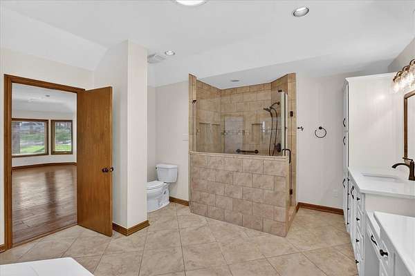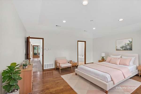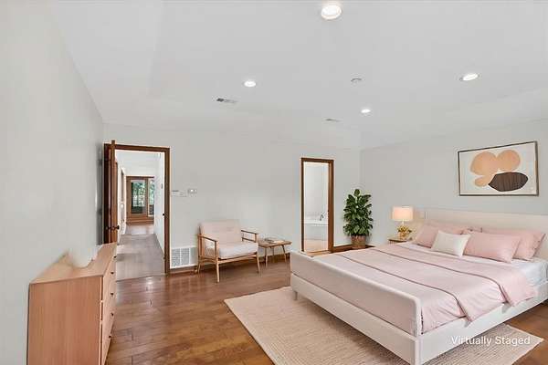 Retreat to the sumptuous primary suite, which offers tranquil garden views and a luxurious spa-like bath complete with dual vanities, a soaking tub, and a deluxe walk-in shower. Three additional generously-sized bedrooms provide ample space for comfort and privacy for every member of the household.