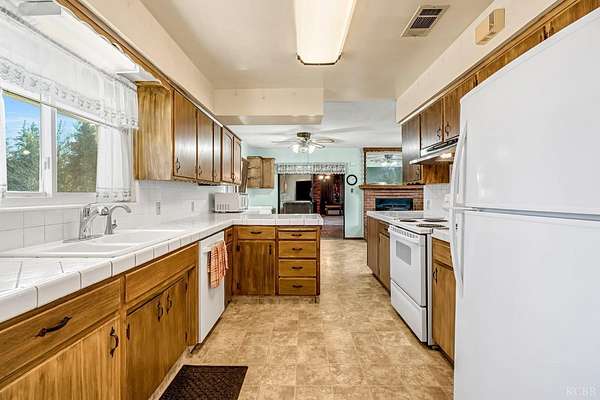 Welcome to the desirable Golden Acres neighborhood in Lemoore's country setting, where space, privacy, and opportunity come together on 2.05 acres. This well-maintained 2,236 sq. ft. home offers 3 bedrooms and 2 full bathrooms, featuring both a formal living room and a spacious great room ideal for everyday living and entertaining. The kitchen provides abundant storage, and you'll appreciate the extensive storage options found throughout the entire home. Outside, the property truly shines. A detached 3-car garage includes a workspace area and a convenient downstairs bathroom plus an upstairs office space with its own bathroom perfect for a home office, guest quarters, hobby space, or potential multi-use setup. In addition, there is a large separate workshop offering even more versatility for projects, storage, or business needs. The 2.05-acre lot is dotted with mature shade trees and fruit trees, creating a peaceful country atmosphere with room to grow. Lovingly maintained over the years, this home offers a solid foundation and incredible potential with some modern updates, it can easily become the perfect country retreat tailored to your style. If you've been looking for space, functionality, and the charm of country living, this Golden Acres property is ready to welcome you home.