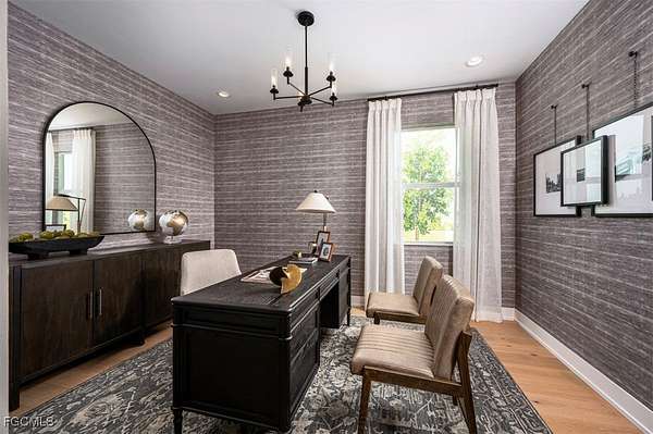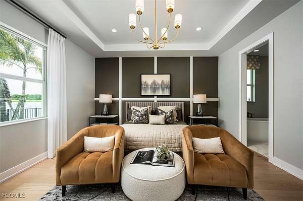 Experience the perfect blend of elegance, comfort, and modern Florida living in this captivating lakefront home overlooking the sparkling waters of Lake Babcock. From the moment you arrive, you'll be enchanted by breathtaking water views and the home's desirable western exposure, offering the perfect backdrop for vibrant sunsets that fill the sky with golden hues year-round. Set on an expansive lot with endless potential, there's plenty of room to design your dream outdoor oasis - whether you envision a custom pool, an extended patio, or a tranquil garden retreat that fully embraces the relaxed, sun-soaked Florida lifestyle. Step inside and discover a thoughtfully designed open-concept floor plan that seamlessly connects the main living, dining, and kitchen areas, showcasing stunning water views throughout. The gourmet kitchen is a chef's dream, featuring gleaming quartz countertops, beautifully crafted solid-wood cabinetry with soft-close features, premium stainless steel appliances, and a natural gas cooktop - perfect for creating culinary masterpieces while enjoying the scenic lake backdrop. The primary suite is a serene sanctuary, where sweeping water views and soft natural light create a peaceful escape. The spa-inspired bathroom features dual sinks, elegant quartz countertops, and refined finishes that elevate comfort and style. Built to the latest Florida building codes, this home offers peace of mind with impact-resistant glass windows and doors throughout, ensuring safety, energy efficiency, and quiet elegance in every room. Enjoy confidence in quality craftsmanship with the builder's warranty, providing reassurance and lasting value for years to come. And for a limited time, take advantage of a special rate buydown opportunity, making this dream home even more attainable. Nestled in the heart of prestigious Babcock Ranch - America's first solar-powered town - this residence offers a lifestyle unlike any other. Residents enjoy access to resort-style amenities, scenic walking and biking trails, and a vibrant, connected community that celebrates sustainability, innovation, and the natural beauty of Southwest Florida. Whether you're entertaining guests, savoring tranquil evenings by the water, or simply soaking in the glow of another perfect Florida sunset, this extraordinary home invites you to experience the very best of lakefront living in Babcock Ranch. Please see MLS supplements for interior design selections/floor plan layout. Lot 6.