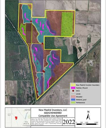 Located just off the Mississippi River in the legendary St. Johns Bayou region of New Madrid County, Missouri, this 695+- acre hunting farm offers a rare and highly sought-after opportunity in one of North America's most historic and productive waterfowl corridors. Surrounded by renowned farms and infamous duck clubs, this property sits at the heart of a region that has long been considered a premier destination for serious hunters chasing mallards in flooded timber, trophy whitetails in bottomland cover, and longbeards in spring green fields.