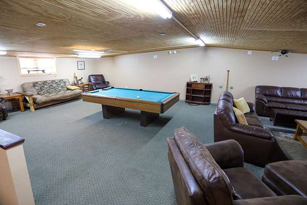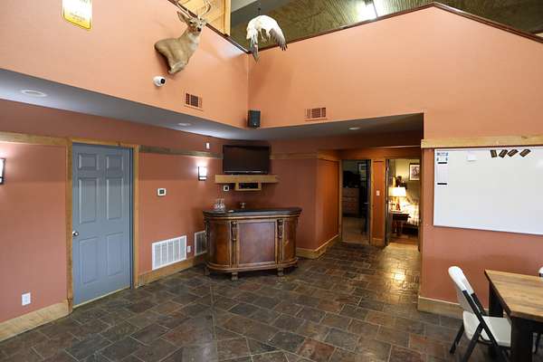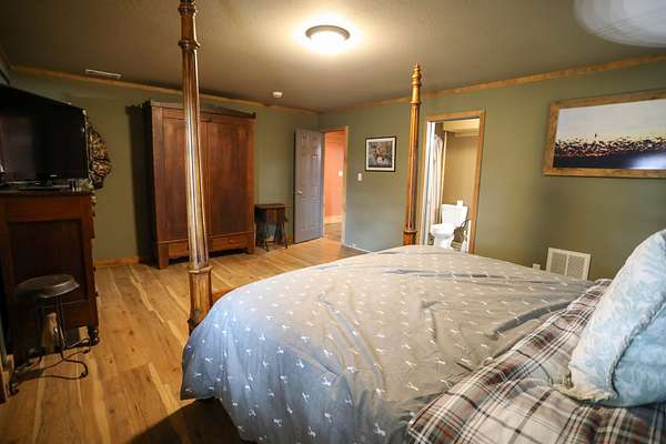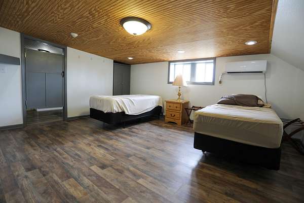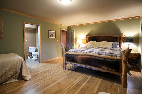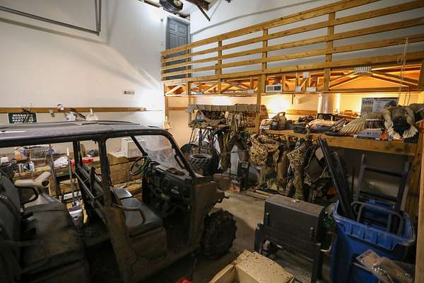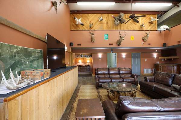 Included in the sale is a spacious, low-maintenance lodge designed for comfort and function. It features two private suites on the main floor, a large upstairs bunk room, and a private en suite upstairs. The commercial-grade kitchen with stainless appliances makes hosting easy, while the large garage/mudroom and screened porch offer practical space for gear and relaxation. Thoughtfully located just off the farm along a gravel road, the lodge maintains privacy and minimizes disruption to wildlife movement on the property.