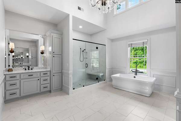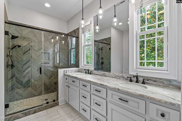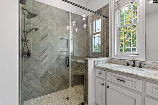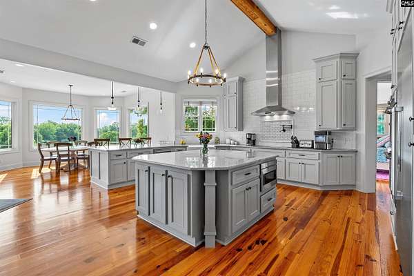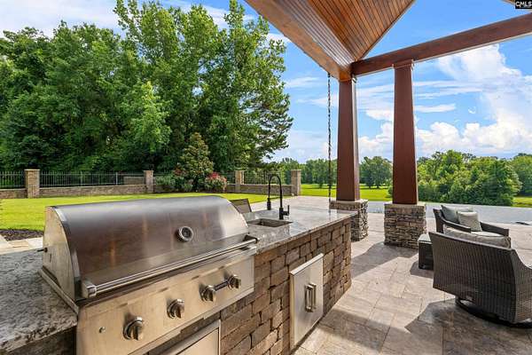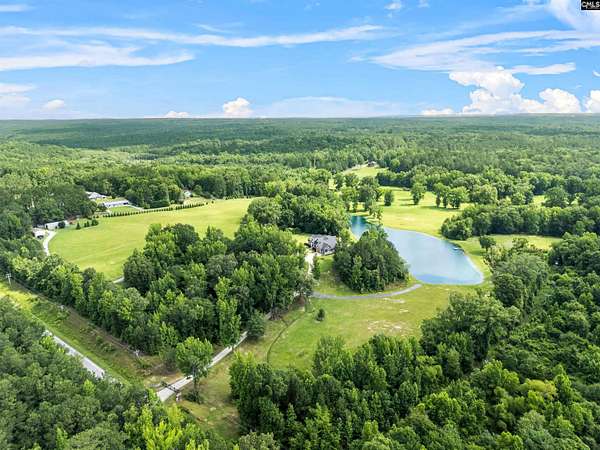 Once a 9-hole golf course, now a pristine, private estate, nestled on +/-60 acres of rolling land. Welcome home to Green Hill Acres. Just beyond the gated entrance is everything you could dream of from the main house, infinity edge salt water pool, guest house, heated and cooled shop, multiple outbuildings, several ponds and even a Golf Simulator/Home Theatre! Custom built by Chase Builders, the single-story main residence showcases superior craftsmanship with 4 bedrooms, 16' beamed ceilings, reclaimed heart-pine floors, a stone fireplace in the great room, and a stunning outdoor lanai. The gourmet kitchen features custom cabinetry, granite counters, and top-tier Thermador appliances. The luxurious primary suite includes a sitting area with fireplace, marble finishes, and serene water views. Three additional bedrooms, along with an office (that could be a 5th bedroom) and spacious laundry room, complete the main living area. One of the most amazing features of this property is the breathtaking views, over the infinity pool, to the 4 acre pond just below. The guest house is just around the corner, with private access off Kelly Town Road and offers 3 bedrooms, 2 full baths a family room and full kitchen. This is perfect spot for a family estate, extra guests, care takers home or could even be rented out. This property is perfect for the outdoorsman with abundant wildlife including deer & turkey, several stocked ponds and creeks that run along the property line. Whether you love cars, wood working, or play, this property has a place for it all with a large heated/cooled shop, RV enclosure, several more outbuildings and a tucked away golf simulator that is sure to impress! The attention to detail and top of the line construction is apparent and includes a full-house generator, spray-foam insulation, surround sound, and irrigation. An extraordinary combination of craftsmanship, privacy, and natural beauty. Green Hill Acres is truly one of Kershaw County's signature estates. Disclaimer: CMLS has not reviewed and, therefore, does not endorse vendors who may appear in listings.