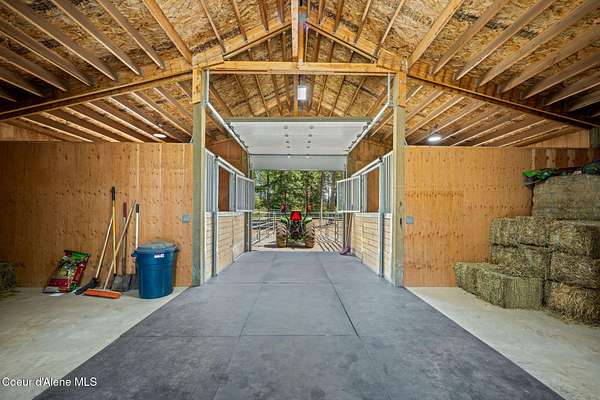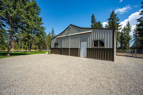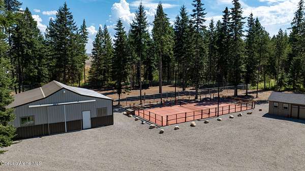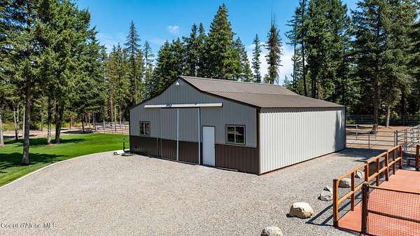 Stunning 3 bed, 3 bath 3,252 SF luxury home on 4.76 acres, built by an award-winning builder in in The Glades a 5-acre paved subdivision in Rathdrum. High-end finishes throughout: hardwood floors, Pella windows, live-edge granite countertops, Thermador Pro Series appliances, custom knotty alder cabinetry, wood-wrapped windows and trim. Spa-like primary suite with oversized mud-set walk-in shower and soaking tub. Expansive covered patio with gas firepit overlooks beautifully parked-out, wooded grounds-perfect for entertaining. Incredible amenities include a 30x60 fenced & lighted pickleball court, large fenced garden, green house, garden shed, 12x16 storage shed, huge graveled parking and driveway to barn. Custom 36x36 2 stall barn with runs & enclosed tack room leads to 5-rail pipe corral-ideal for equestrian lovers. This location is minutes from Dining, Shopping, Medical, Lakes, Mountains & Riding trails & all the recreation North Idaho has to offer!