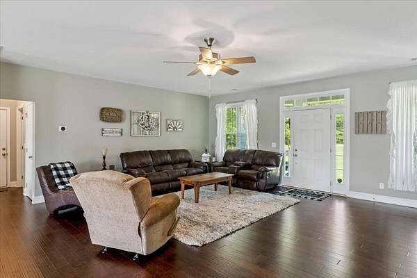 Welcome to your new sanctuary! This enchanting 3-bedroom, 2-bathroom ranch home is nestled on just under 6 acres of lush, rolling landscape in the peaceful and picturesque town of Greenwood, SC. Built in 2018, this inviting residence spans 2,029 square feet and exudes warmth and charm at every turn. Step onto the spacious front porch, where you can rock gently in the breeze and soak up the breathtaking views of the surrounding nature. Inside, you'll find gorgeous hardwood floors that add a touch of elegance, complemented by a cozy stacking stone wood-burning fireplace perfect for creating a comforting ambiance on cooler evenings. The main living area offers an open concept layout, seamlessly connecting a spacious, chef-ready kitchen with a welcoming living space-ideal for entertaining family and friends. The large primary bedroom and luxurious bathroom provide a private retreat, while the expansive laundry room adds practicality to daily life. This home is designed for both comfort and serenity, with a generous two-car garage offering convenience and storage. Situated off the beaten path, the property provides a rare sense of privacy and seclusion, making it ideal for starting a small farm, enjoying quiet hunting excursions, or simply relaxing amidst the tranquility of Mother Nature. With no HOA restrictions, the possibilities are endless to customize your outdoor paradise. This exceptional property won't last long-embrace the chance to own a peaceful retreat in Greenwood, where every day feels like a retreat into nature's embrace, that comes fully equipped with fiber optic internet!