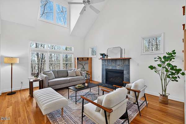 Escape to this peaceful retreat surrounded by native plants and songbirds. Set on 2.6 acres, this 2,459 sq. ft. home offers the perfect blend of privacy and convenience-just 1.5 miles from I-40/85. The primary bedroom is conveniently located on the main level, with spacious secondary bedrooms upstairs. The main level also includes a handy laundry room and a central vacuum system for easy living. Enjoy an open floor plan with hardwood flooring throughout the main level. The living room and kitchen flow seamlessly-ideal for entertaining. Step outside to a large screened-in porch and open deck where you can unwind and take in the peaceful surroundings. The fenced yard provides room to play, garden, or simply relax. This one's a rare find!